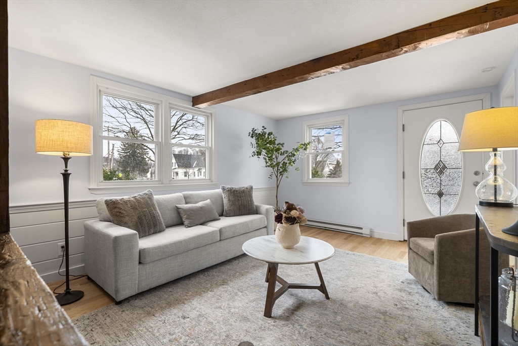 Welcome to 14 Mutton Lane — a conveniently located 5-bedroom, 2-bathroom home set adjacent to the Bradford Hawes Park. The property is just 1.4 miles from Weymouth High School, and only a 5-minute drive to the Derby Street Shops and major highway access. This home features a long driveway, one-car garage, and a fully fenced in backyard. The front of the house offers beautiful exposed wood beams and timeless charm, while an early-2000s addition provides extra living space with modern finishes. Recent cosmetic renovations include new hardwood flooring, fresh interior paint, and a brand-new first floor bathroom. This gorgeous home blends historic character with modern updates and is truly move-in ready for its new owners.