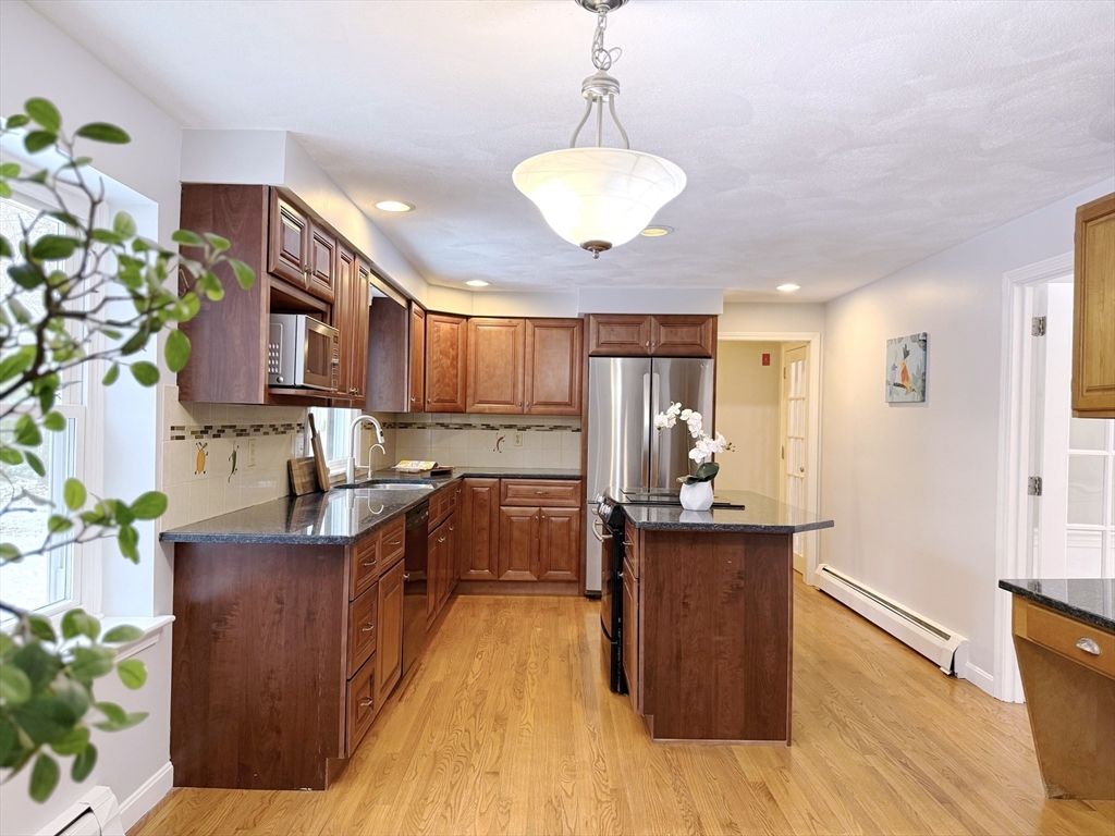 Nestled on a quiet cul-de-sac in desirable South Acton, this well-maintained 4-bedroom Colonial sits on a private 1-acre lot. The open-concept first floor features a sun-filled family room with high ceilings and an efficient pellet stove, ideal for everyday living and entertaining. The eat-in kitchen offers newer appliances, sleek countertops, and ample storage, opening to a large deck and scenic porch with expansive views for outdoor enjoyment. Picture windows brighten the dining room. The spacious primary suite features abundant natural light, a large walk-in closet, and a generously sized en-suite bath. Hardwood floors throughout, fresh interior and exterior paint, and a flexible bonus room add versatility. Recent updates new oil tank, refrigerator, pellet stove, washer and more. Convenient to commuter rail, highways, shopping, conservation land, and the top-rated Acton-Boxborough School District, with easy access to historical sites in Maynard, West Concord, and North Sudbury.