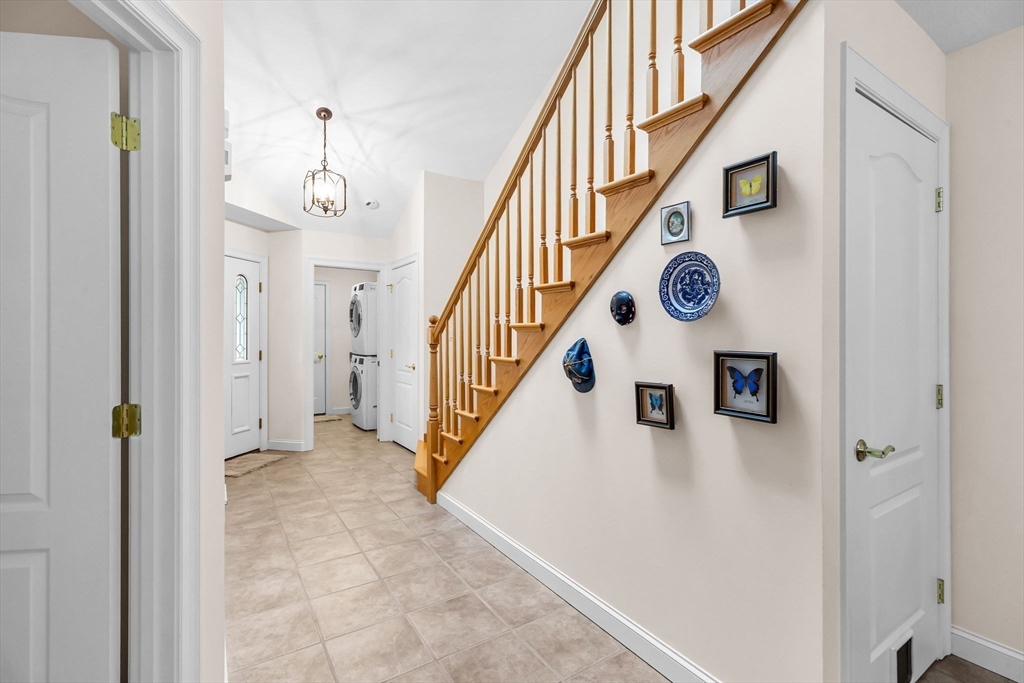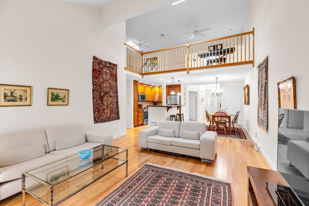 Pristine and highly sought after unit features an open and flexible floor plan! Gorgeous kitchen/dining area boast ceramic tile flooring and backsplash, granite countertops, cherry cabinetry, newer energy-efficient stainless-steel appliances, that opens to the spacious living room with cathedral ceiling, hardwood floors leading to a private Trex deck. The first-floor primary bedroom offers a cathedral ceiling, palladium window, walk-in closet, and an en suite ¾ bath with a tiled walk-in shower. The sun-filled loft on the second level overlooks the main living area and provides additional versatile space, enhanced by newer skylights. A welcoming foyer leads to a first-floor laundry room and an attached two-car garage with a double-wide driveway. The partially finished basement provides extra living space, storage, and is plumbed for a bathroom. Recent updates include newer roof and hot water tank. In-ground swimming pool, tennis/pickleball, clubhouse, and beautifully maintained grounds!