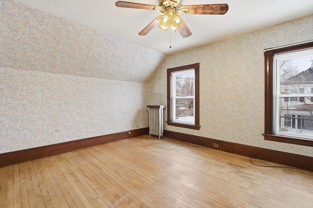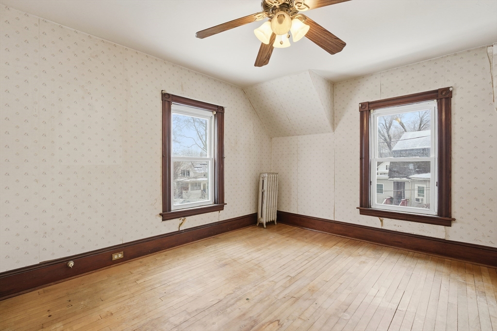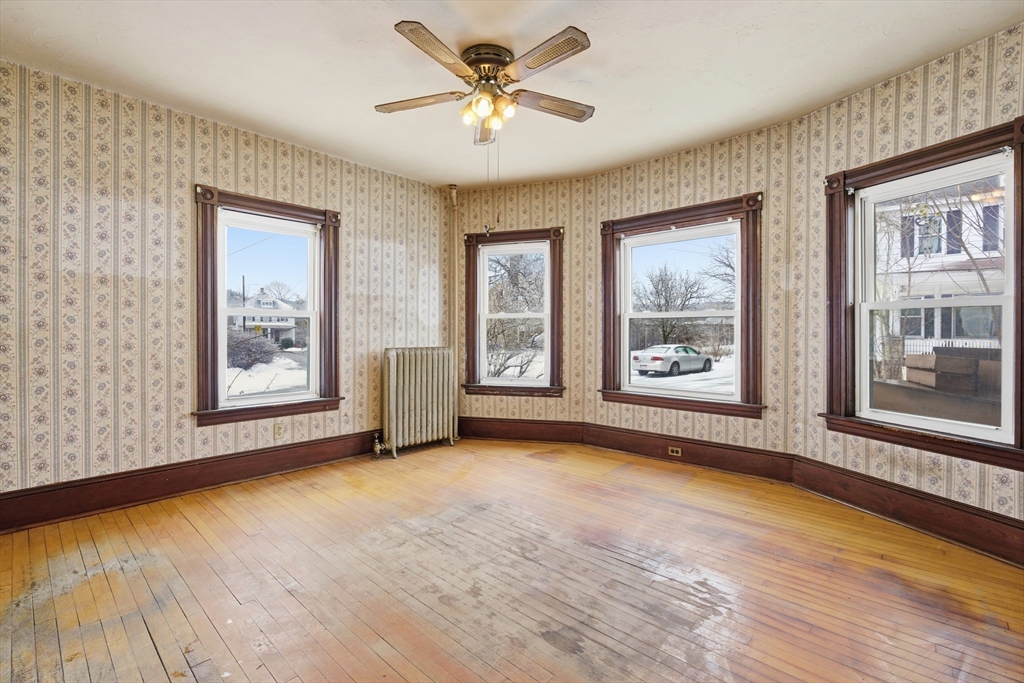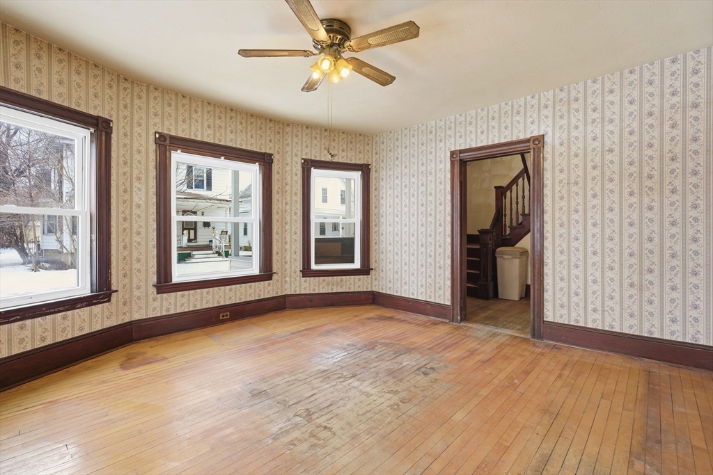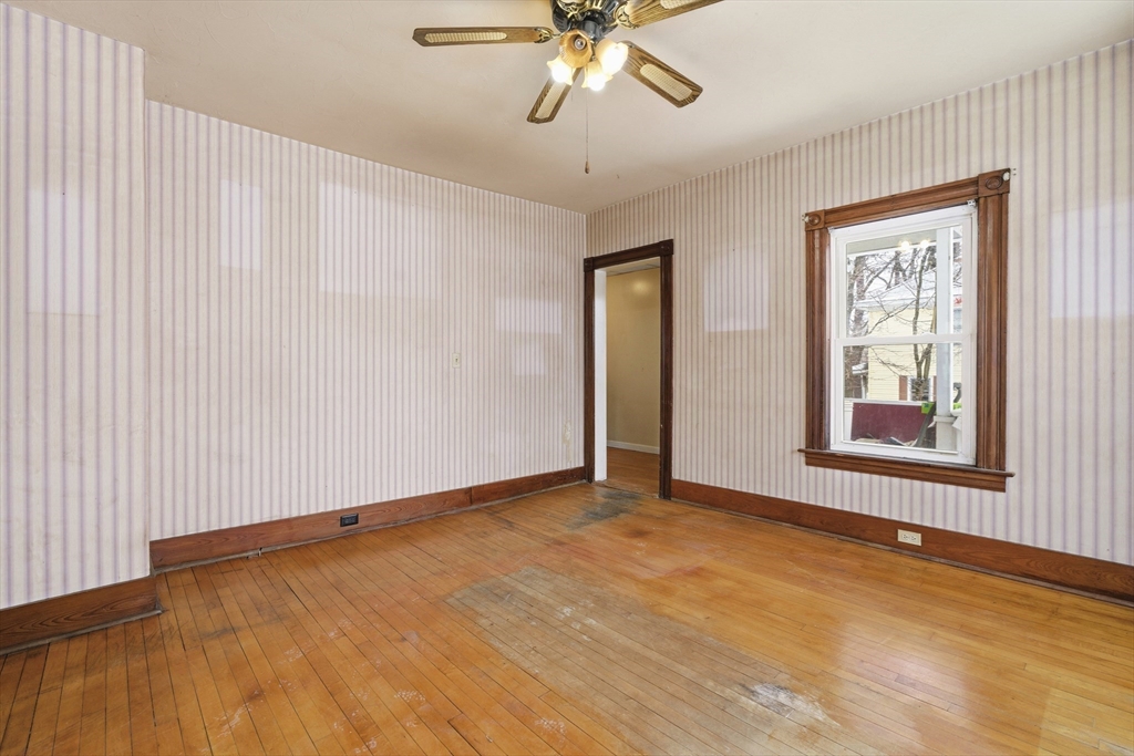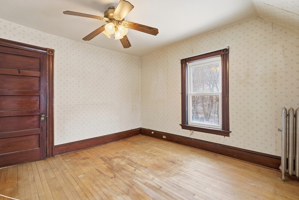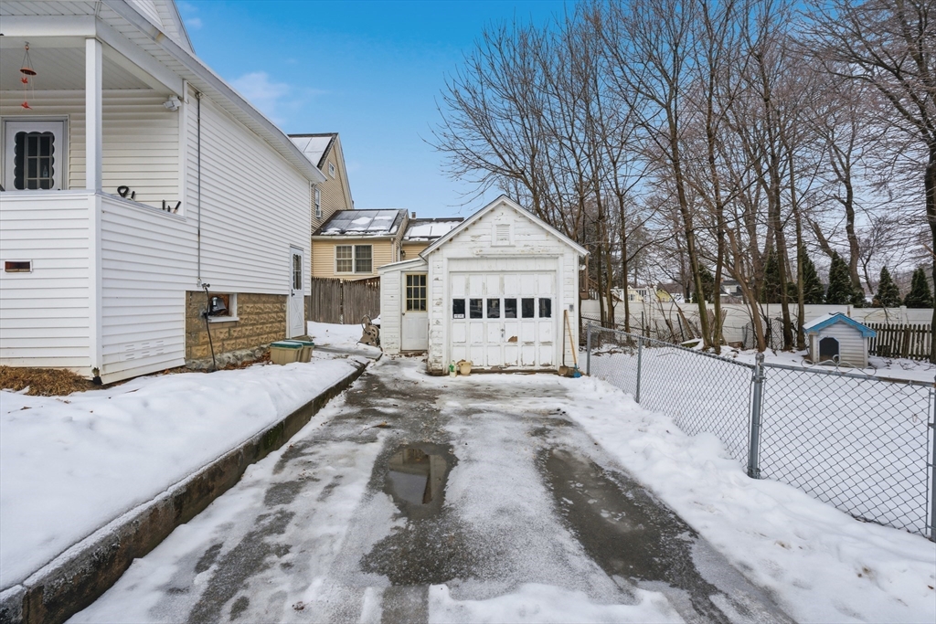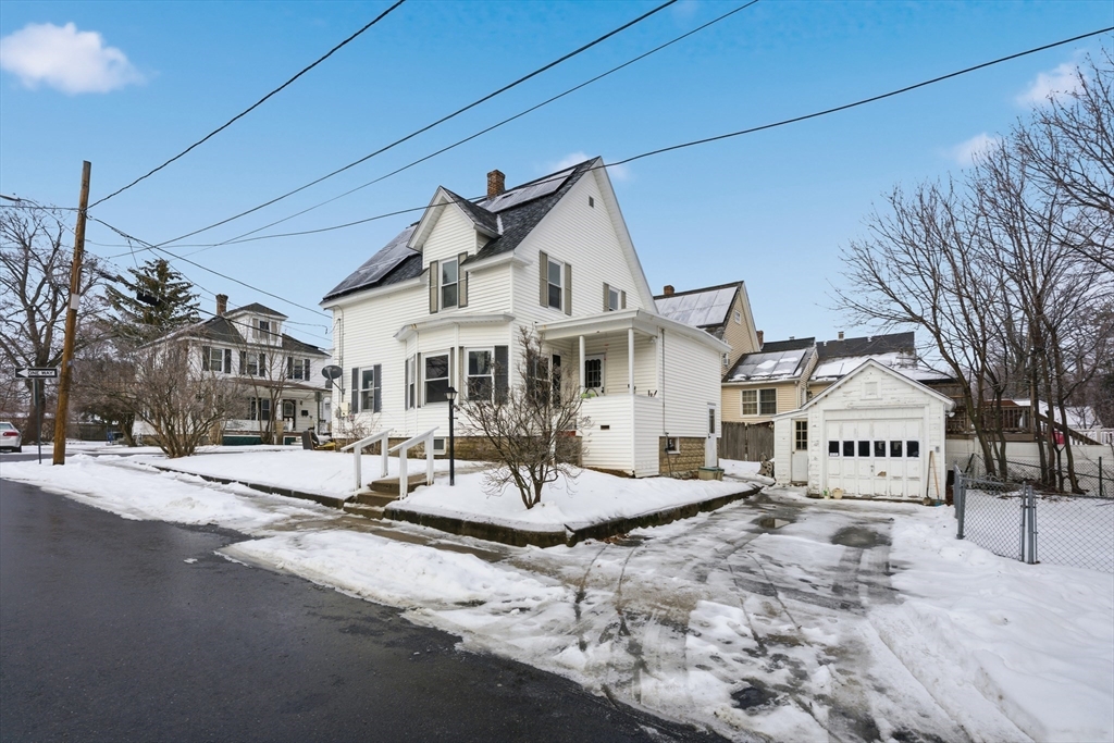 A welcoming covered front porch leads you into an inviting foyer, setting the stage for this charming home. WIth your updates and cosmetics this home will shine! The sun-filled family room and dining room feature hardwood floors and abundant natural light, creating warm and comfortable gathering spaces. The spacious eat-in kitchen offers ample room for everyday meals and entertaining. Upstairs, you’ll find a large full bath, two generously sized bedrooms with hardwood floors, a dedicated laundry room, and a great closet space for additional storage. A paved driveway leads to a one-car garage, all set on a corner lot with a fenced in area. Leased solar panels add energy efficiency and potential utility savings at low monthly cost. Don’t miss your chance to make this gem shine again! Ideally located just moments from the heart of Leominster, where you can enjoy seasonal festivities, restaurants, and local shops.