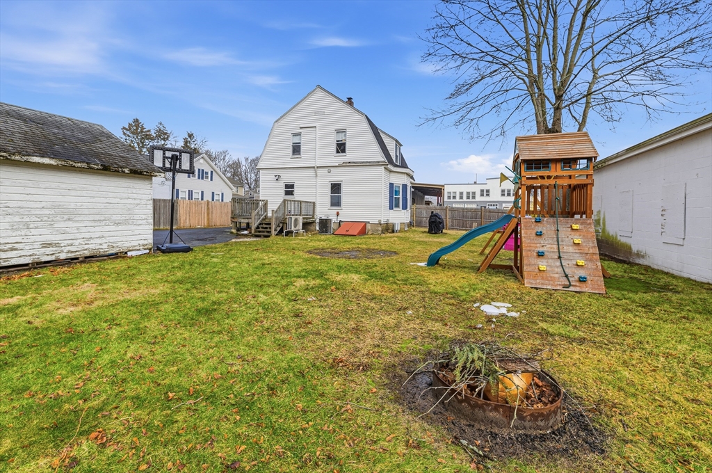 Charming 3-bedroom, 2 full bath Colonial offering a bright and open first-floor layout perfect for everyday living and entertaining. The main level features a spacious living area, a separate dining room, a full bath, and a beautiful kitchen with granite countertops. Enjoy the comfort of central air conditioning throughout the entire home. Upstairs, you’ll find three generously sized bedrooms and another full bath. Relax year-round in the inviting three-season, all-window front porch. Additional highlights include a detached one-car garage with electricity and plenty of storage. Conveniently located within walking distance to Pierce Playground, tennis courts, basketball courts, and the town pool—perfect for enjoying all the neighborhood amenities