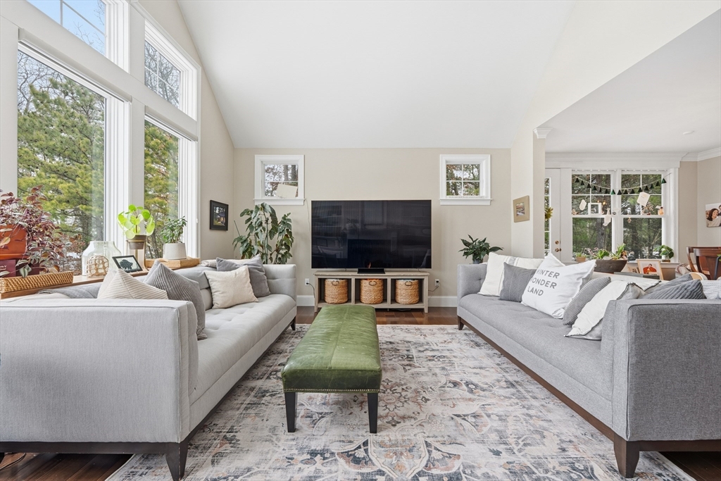 Commanding Panoramic views of LeBaron Hills Golf Course, this Refined Lakeville residence delivers an exceptional blend of Luxury, Scale & Design. The sun-drenched main level showcases a striking open floor plan w/wide-plank Brazilian Hdwd flrs & a dramatic Living Rm highlighted by 14-ft cathedral ceilings, Gas fireplace, Custom built-ins & a stunning wall of windows overlooking the fairways. The chef’s kitchen features Granite countertops, an oversized center island, stainless upgraded appliances- ideal for both intimate evenings & elegant entertaining. A 1st Flr primary suite offers a serene retreat w/golf course views, a generous walk-in closet & spa-inspired bath with walk-in tiled shower. A private 16x16 Azek deck provides a peaceful outdoor extension w/uninterrupted views. The finished lower level offers 10-ft ceilings, a 22x16 Family Rm w/custom built Red Wood Countertop & 2 Tiered Granite Bar w/seating for 4, 2 add'l bdrms a full bath. A private sauna completes this offering!