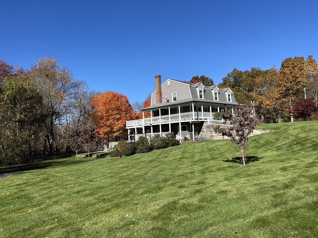Showings start at Open House. 1/17- 1-3PM This Dutch Style Gambrel sits on 1.18 acres with stone walls surrounding it and a beautiful farmer style wraparound porch. Lush landscaping w/ sprinkler system, basketball court, and patio with hot tub.The in-law unit has its separate driveway and there is a two-car garage for the main house on its own driveway Updated kitchen with Corian countertops, center island, and breakfast nook. Formal dining room off the kitchen with hardwoods. First floor laundry and half bath. Step down from the kitchen to the fireplace family room which has a beautiful barn door that leads to the front living room, The second floor boasts 3/4 bedrooms with plenty of closet space and ceiling fans. The Main bedroom has a large Walkin closet, and a main bath has a jetted tub with tile floor and shower stall. The office is right off the mail bedroom. The second bath was recently remodeled with beautiful new vanity and Corian w/ tile floor. The lower lever hosts in-law .