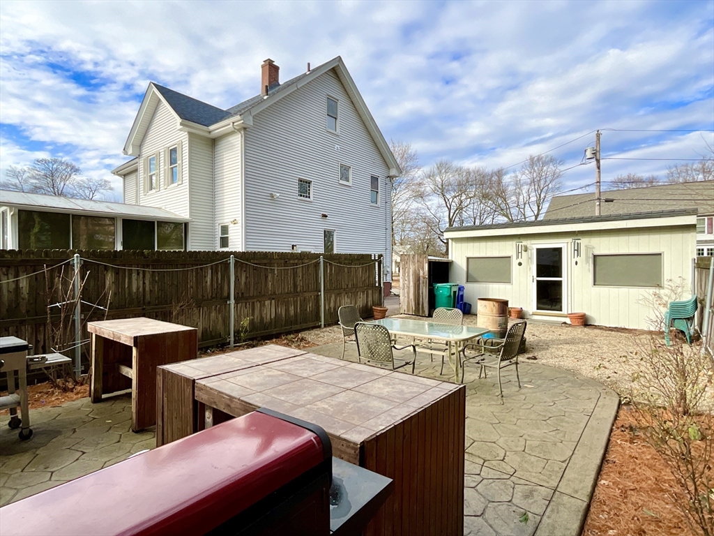 This expansive three-level colonial home offers approximately 2,365 sq ft of above-grade living space with at least 4 bedrooms and 2.5 baths, providing flexible room configurations. The main living level features a kitchen with adjacent dining area, living room, sunroom, office, pantry, and foyer. Upper levels provide multiple private bedrooms, including a primary suite, sitting areas, and well-placed baths, with oversized rooms on the upper floors ideal for flexible use. Exterior features include a one-car garage, corner lot setting, dual street driveway access, a fenced private area with firepit, barbeque area with awning, and a shed-style screened room offering additional space for outdoor enjoyment. Situated in the Hebronville area of Attleboro with convenient access to shopping, dining, recreation, MBTA rail service, and major commuter highways serving Providence and Boston. Buyer and buyer’s agent to verify all information.