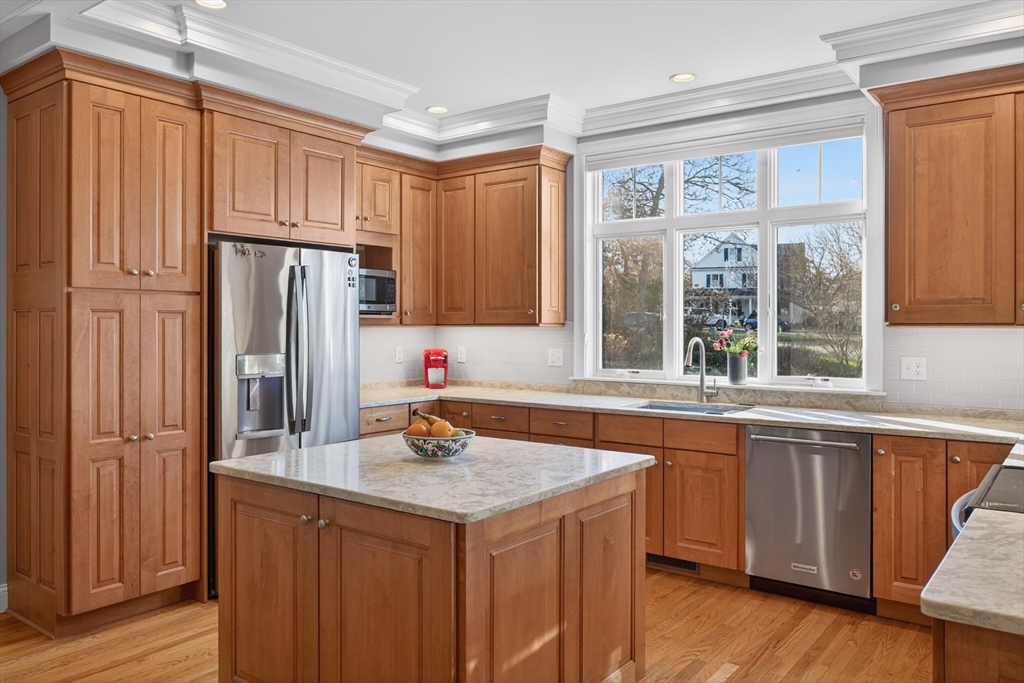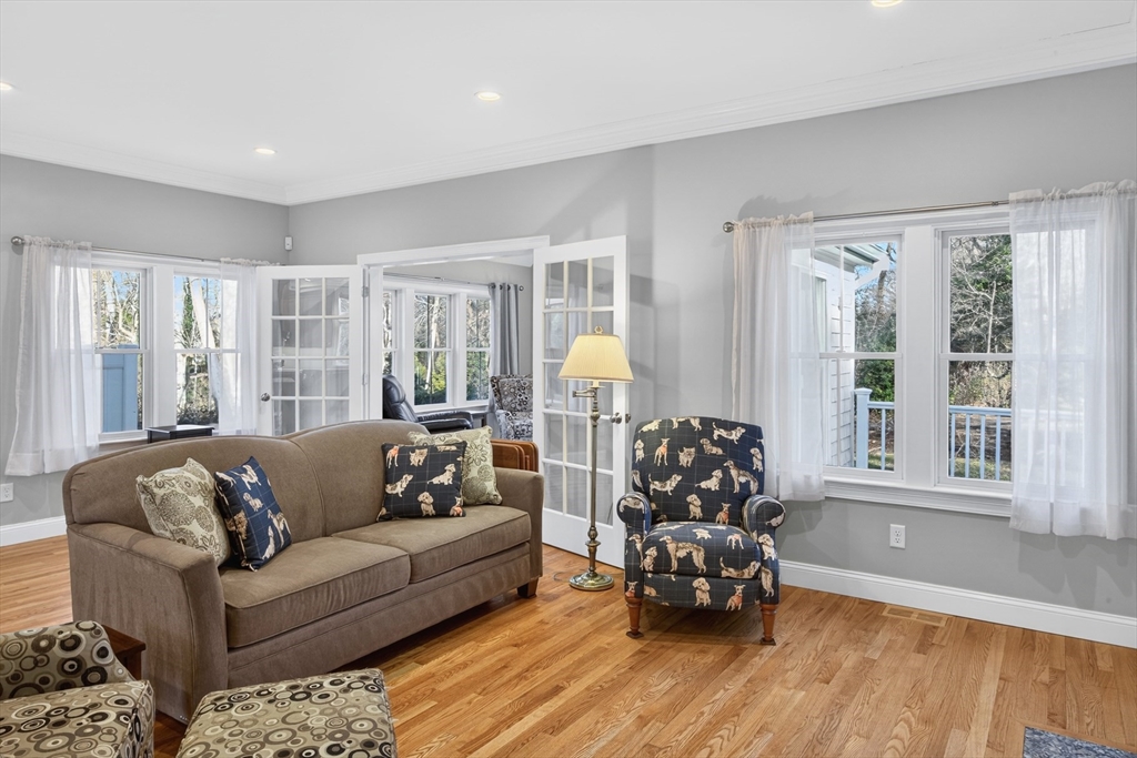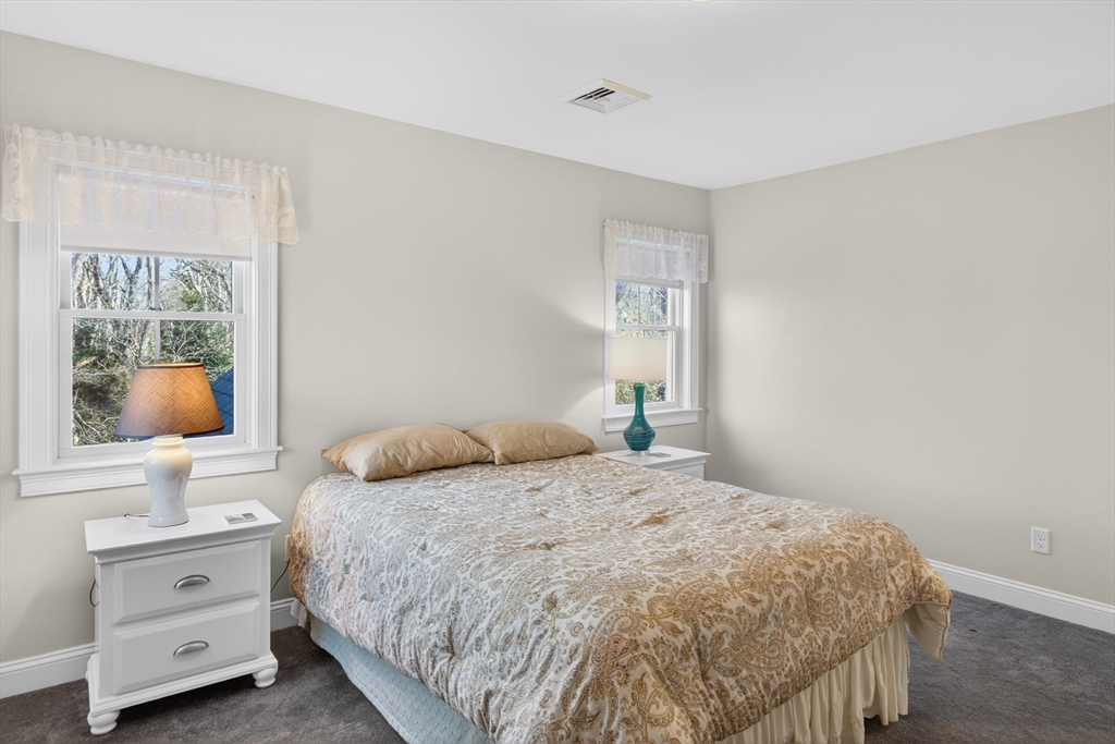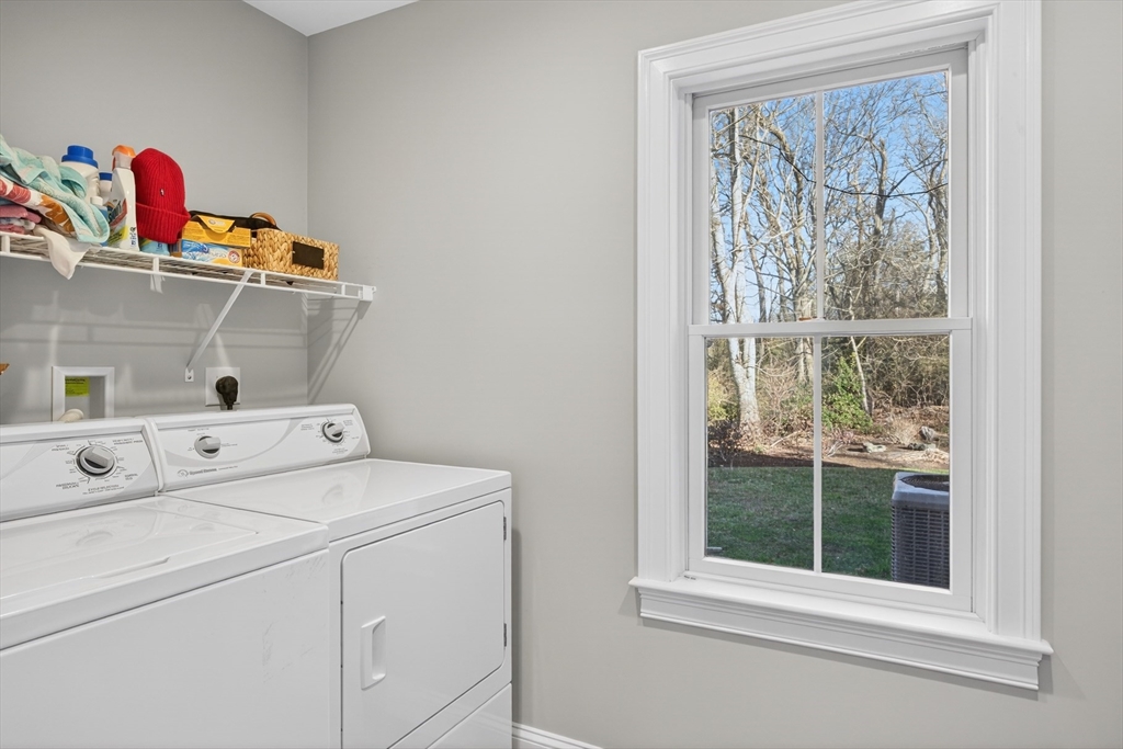 Thoughtful, turn-key custom home completed in 2017, this 3 BR, 2.5 Bath, 2,356 sf home sits comfortably on a wonderfully landscaped 1-acre lot within a private three-home cul-de-sac just around the corner from the heart of Yarmouth Port Village and some of Cape Cod's finest restaurants. The sun-drenched, open-concept first floor is designed for easy living and includes hardwood flooring throughout. It encompasses a well-appointed kitchen, a living room with a gas fireplace, a dining room, and a sunroom that opens onto a secluded deck. Also on the main level are a generous primary bedroom suite with a private full bath, a laundry room, and a powder room. Upstairs, the second floor offers two additional bedrooms sharing a full bath, as well as a versatile loft with great potential. The clean, dry lower level provides a dedicated workshop area and ample storage. Additional amenities include an attached two-car garage, outdoor shower, irrigation system, AZEK trim and whole-house generator.