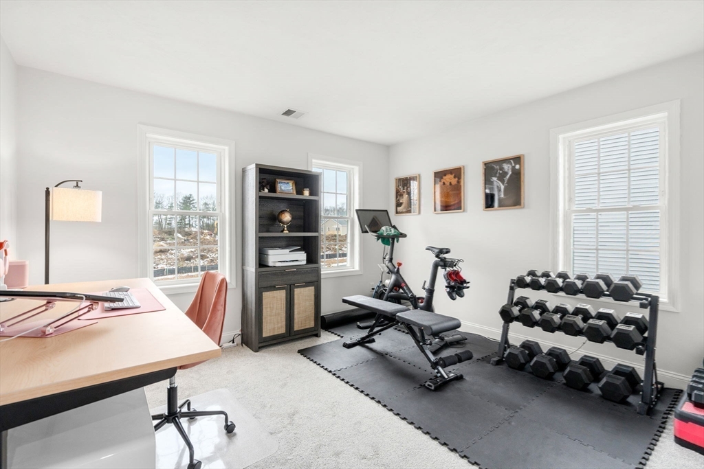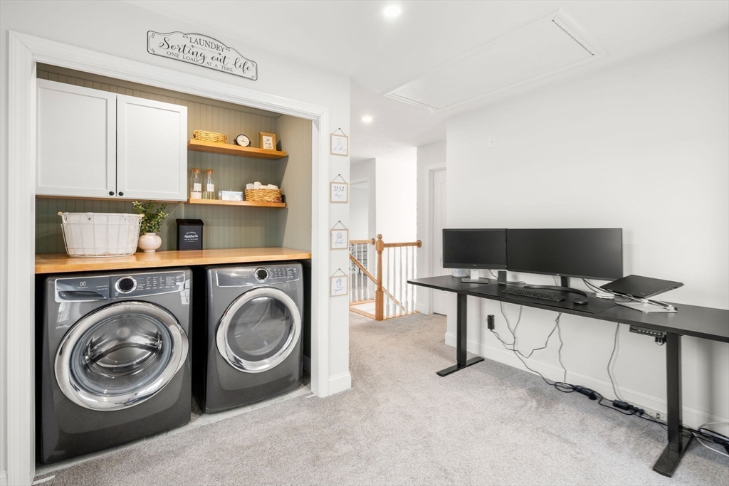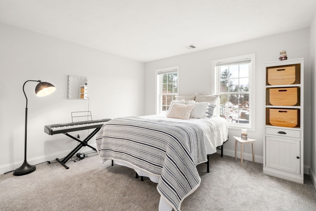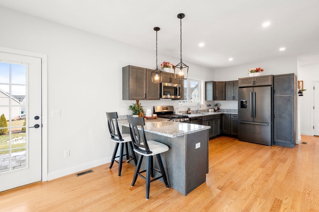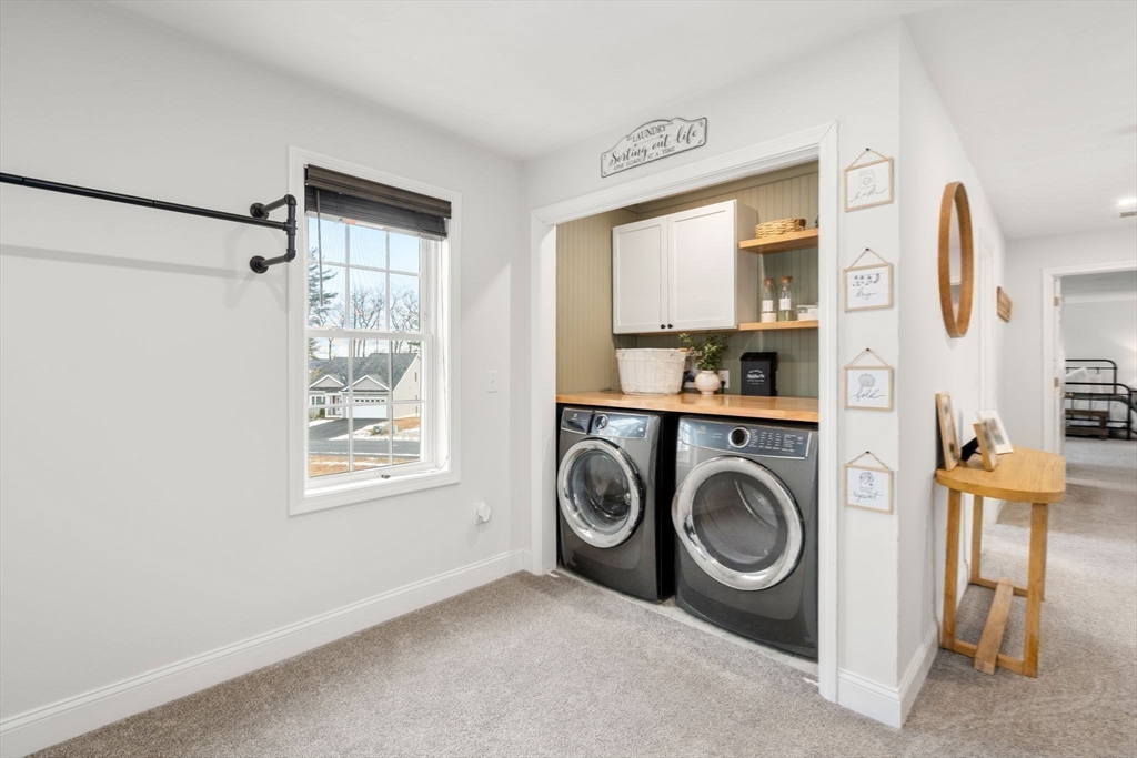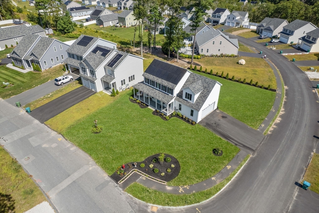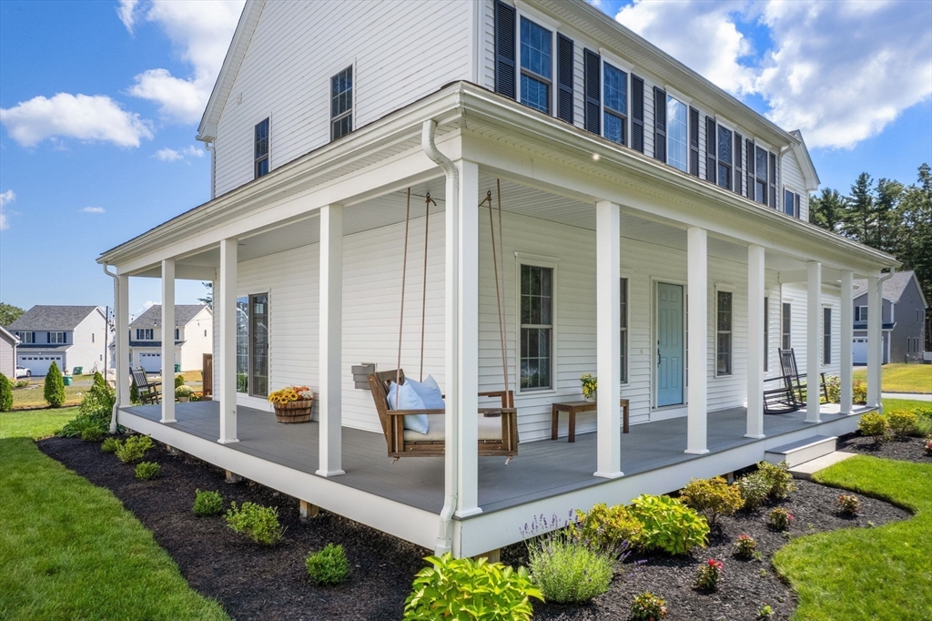 Fall in love with this bright & inviting contemporary colonial, built 2021, ideally located in the Villages at Patriot Landing. Brimming w/curb appeal, the wrap-around veranda porch welcomes you inside. A sun-filled & well balanced open layout is designed for comfort. The homes large eat-in kitchen is thoughtfully appointed with Bosch & GE stainless appliances, loads of cabinetry & granite peninsula with plenty of space to gather.The adjoining living room/family room is centered with an inviting gas fireplace.The gracious & spacious dining room is perfect for entertaining. Second level offers a large primary suite w/private bath & oversized walk-in closet outfitted w/custom cabinetry.Two additional well-proportioned bedrooms, a full bath and a large loft with laundry area complete the 2nd level.Central air, gas heat, paver patio, wifi-compatible irrigation & attached two-car garage provide for everyday convenience. SELLER OWNED SOLAR PANELS deliver ZERO ANNUAL ELECTRIC COSTS to date!