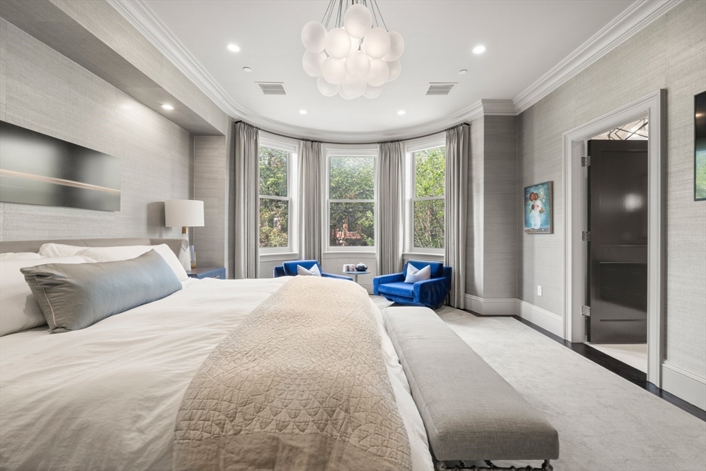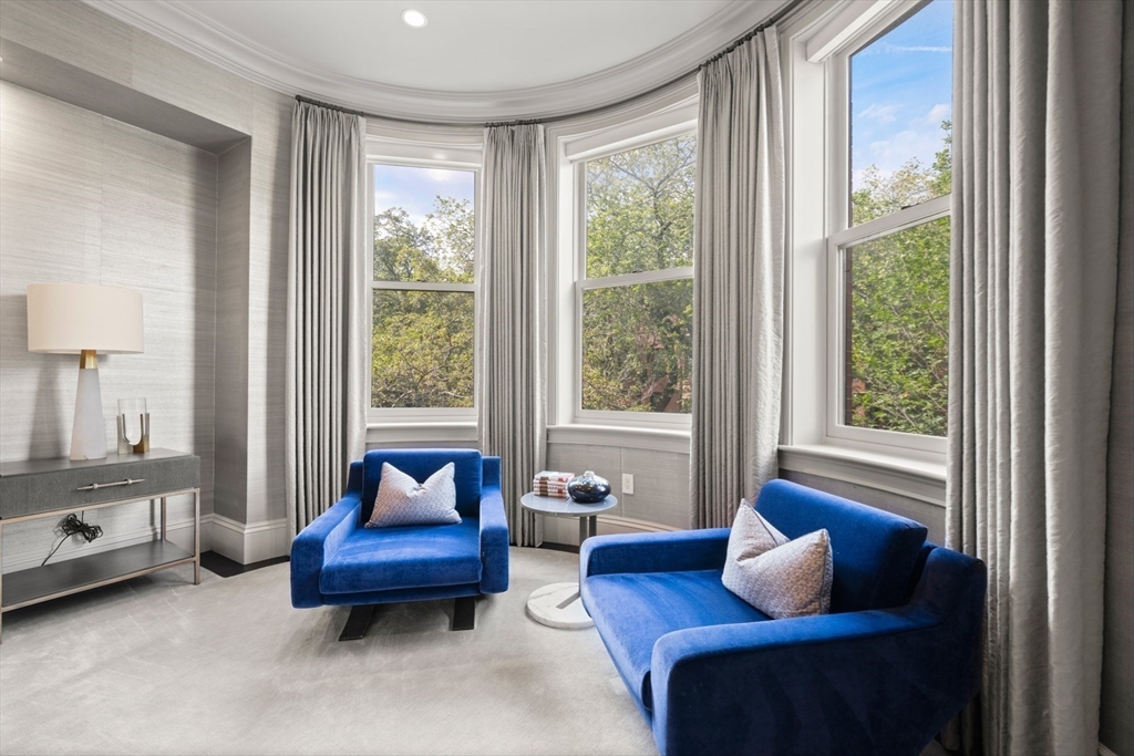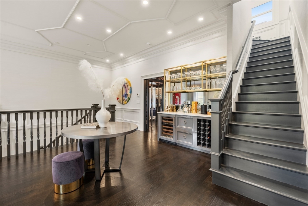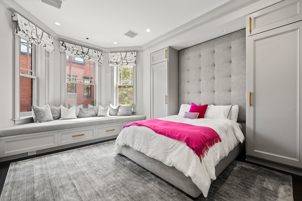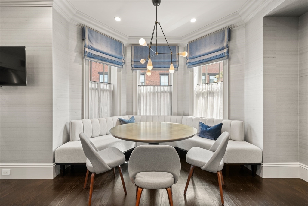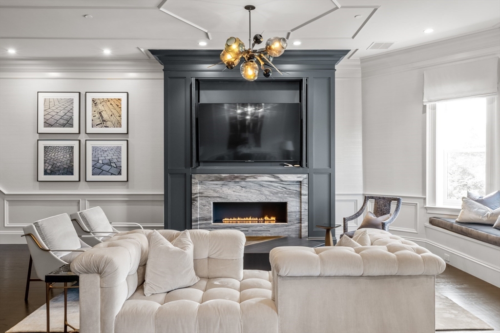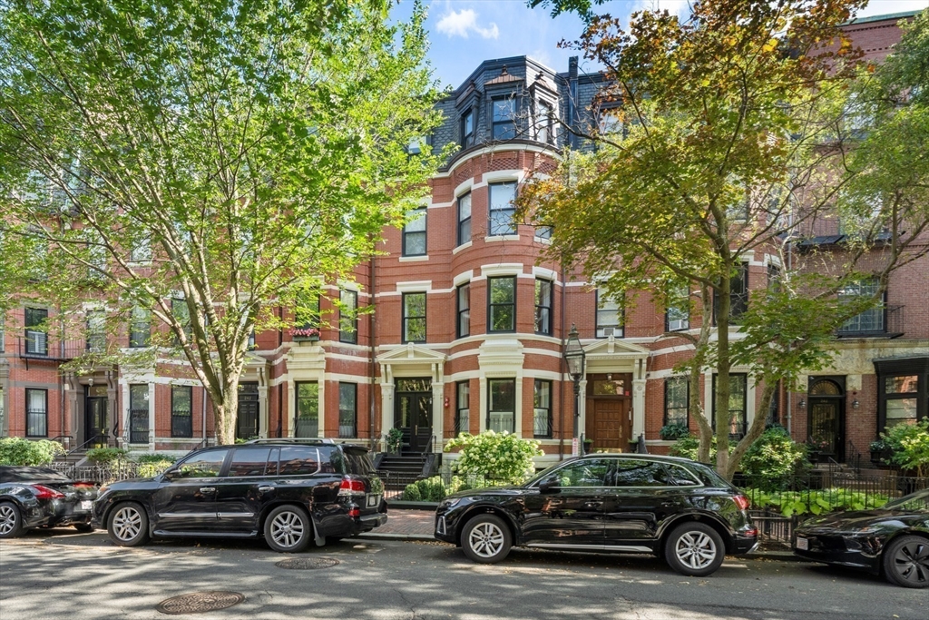 Beautifully updated interiors combine with classical architectural details in this graciously renovated penthouse duplex on Marlborough Street in Back Bay. This 3-bed, 2.5 bath home is situated in an exceptionally wide townhouse complete with an outstanding private roof deck, direct elevator access, and 2 parking spaces. The open plan living area features custom decorative ceiling molding, a striking gas fireplace with marble surround, designer light fixtures, and a custom built-in dry bar. The gourmet eat-in kitchen and family room is equipped with exquisite marble countertops, custom cabinetry with brass hardware, custom banquette window seating, and high-end appliances. The luxurious primary suite offers an expansive dressing room and a lavish five-piece marble bath. Atop it all is a sensational roof deck that opens to a full head house and offers multiple seating areas and fabulous Back Bay views. No detail was overlooked in the design and renovation of this spectacular residence.