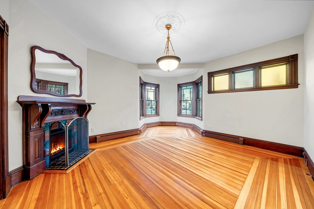 Victorian-inspired 2-bed, 1.5-bath condo offering 1,400+ sq ft across two levels, featuring two fireplaces (one outfitted with a working gas insert), one assigned off-street parking, and a sizeable backyard for rare outdoor space in Winthrop. An updated kitchen with vintage accents and quality craftmanship deliver timeless character —charm you simply can’t reproduce in today’s construction. The space immediately provides a single-family feel by opening to a generous living and dining area boasting ten ft. ceilings, with a well-suited half bath on the main level and a full bath adjacent to the primary bedroom. This home combines cozy ambiance and coastal neighborhood living in one standout residence. The property is located directly next to the historic library and walking distance (3 minutes) to downtown Winthrop, with convenient access to coffee shops, a yoga studio, and local restaurants. HOA covers water, blanket insurance, and snow removal. The stairs and deck are brand new.