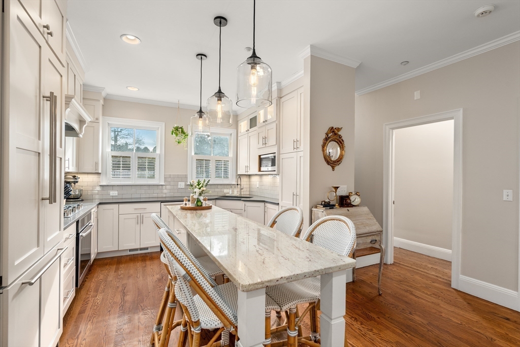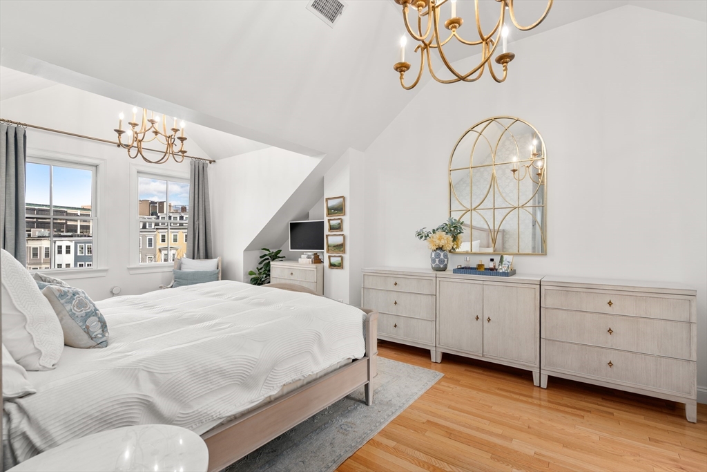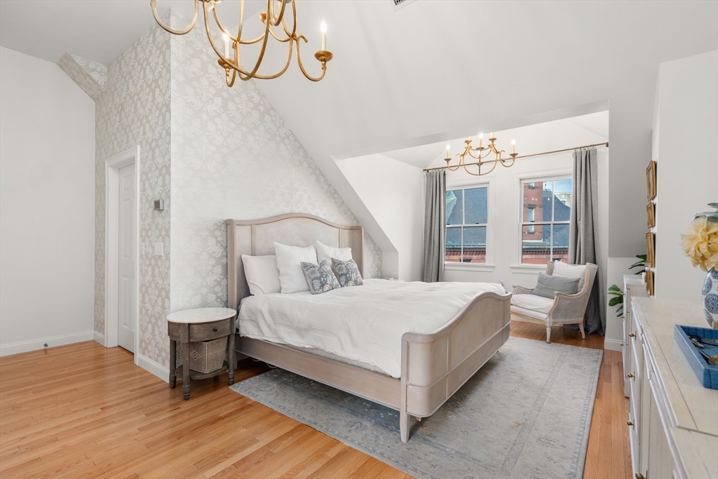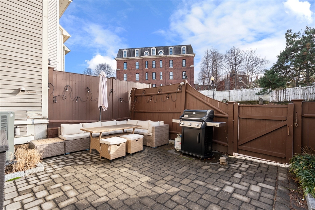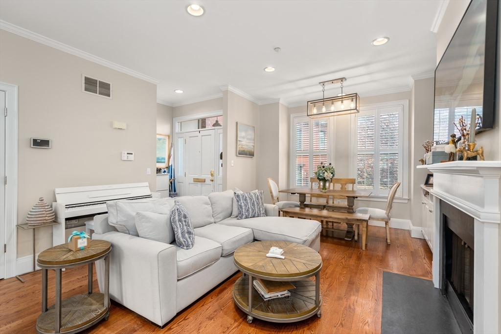 Located on a charming cobblestone street, this beautifully updated 2,283 SF single-family home offers 3 bedrooms, 3.5 bathrooms, and 2 off-street parking spaces. Filled with great natural sunlight, the home features hardwood floors throughout, crown molding, plantation shutters, updated lighting, and central A/C. The stylish kitchen is designed for both function and entertaining, featuring stone countertops, a center island with built-in dining, and a wine bar. Enjoy direct access to a private patio, perfect for relaxing or hosting guests. The bonus lower-level room with a full bath provides flexible space ideal for a media room, playroom, or home office. The second floor offers two spacious bedrooms, a renovated full bath, and laundry. The top-floor, king sized, primary suite is a true retreat with vaulted ceilings, elegant lighting, a walk-in closet, and a spa-like bathroom. A perfect blend of classic charm and modern comfort in one of Boston’s most desirable neighborhoods.
