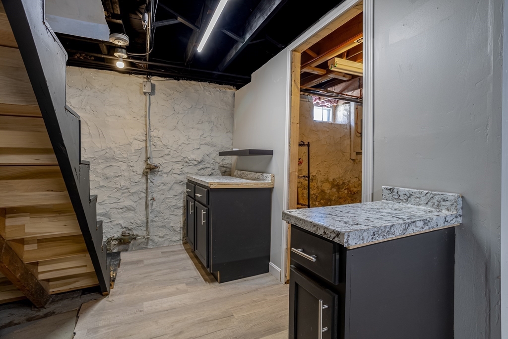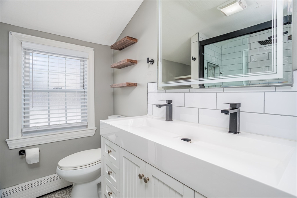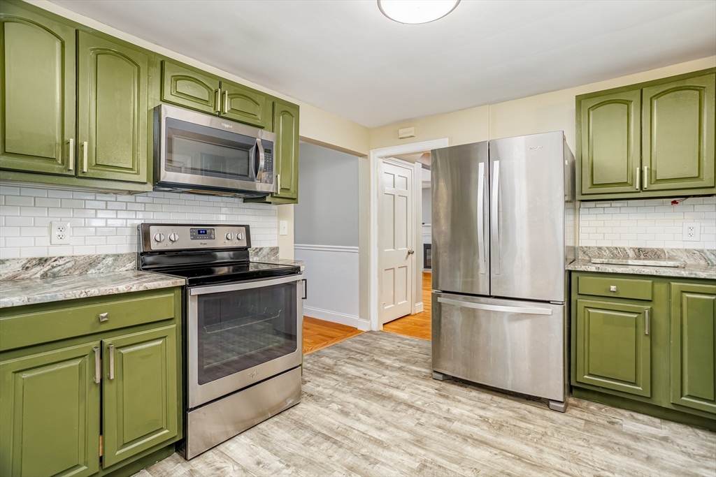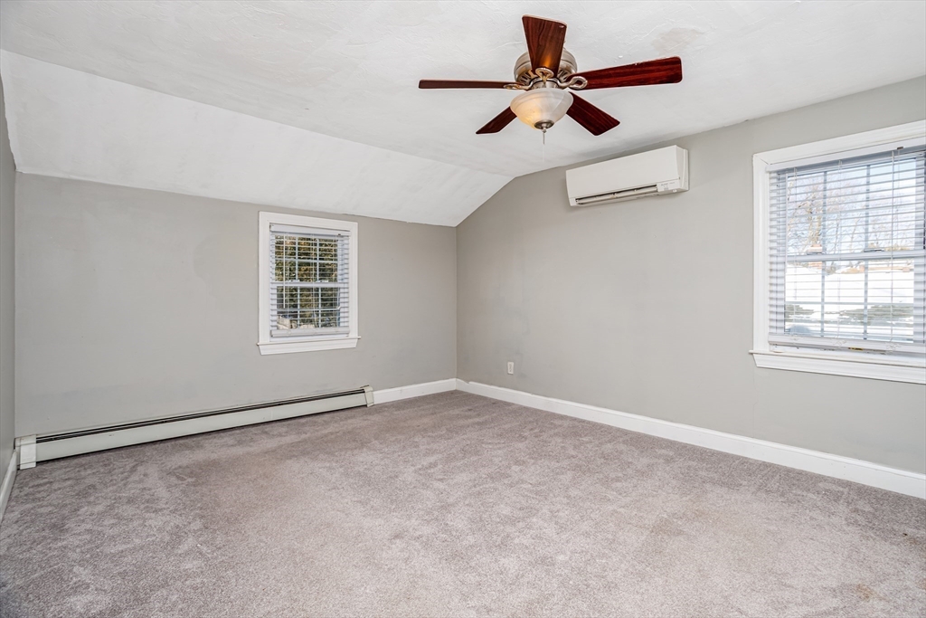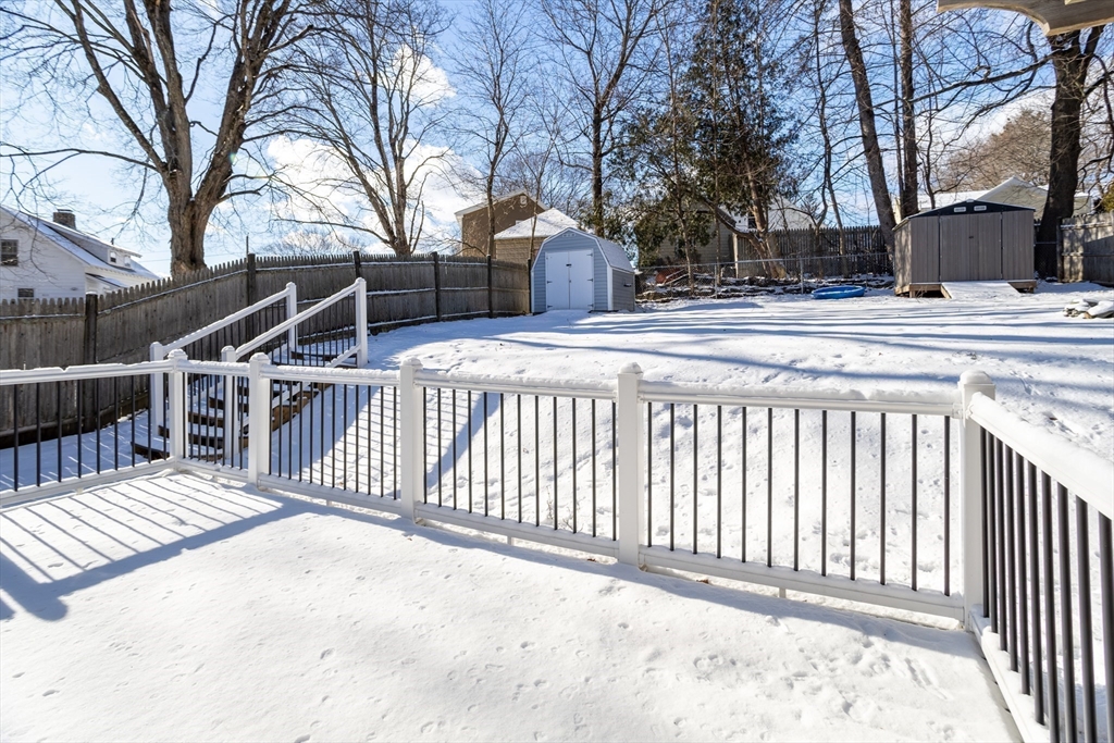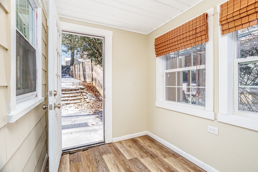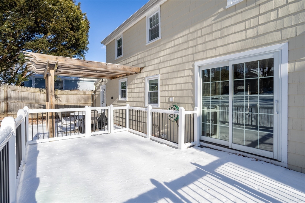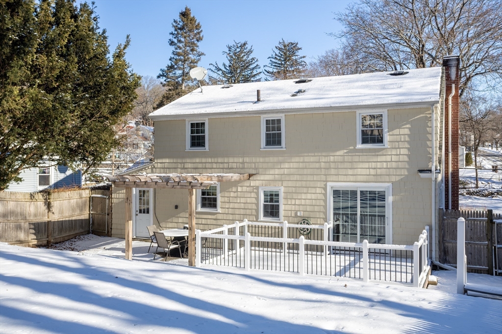 Welcome home to this remodeled classic New England Cape. This charming 3-bedroom, 2-full bath home offers a versatile first-floor bonus space ideal for a home office, kids playroom, or a potential fourth bedroom. Enjoy an open-concept layout featuring a cozy fireplaced living room that flows seamlessly into the dining area, highlighted by elegant French doors leading out to a fully upgraded deck and patio- perfect for entertaining or relaxing in the private, fully fenced backyard. The partially finished basement provides additional living space, ideal for a family room or recreation area. Recent updates include new carpeting installed in 2023 in bedrooms and a fully remodeled upstairs bathroom completed in 2022. This move-in-ready home offers comfort, flexibility, and timeless New England charm--Don't miss the opportunity to make it yours!