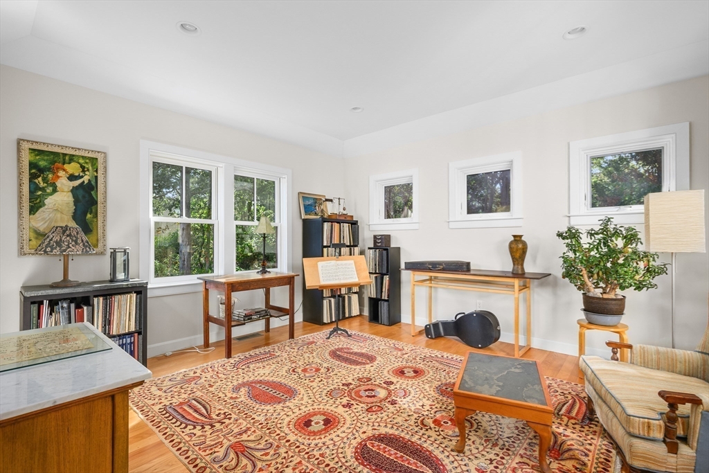 Introducing 35 Tracy Lane, a custom-designed masterpiece nestled in a coveted private setting. Built in 2013, this home showcases impeccable craftsmanship, refined finishes, and thoughtful detail throughout. Offering two bedrooms, 2.5 baths, and 2,076 sq. ft. of spacious living space.The open floor plan invites effortless entertaining, from the chef's kitchen with a substantial island and cherry cabinetry, which flows into the inviting dining area and living room anchored by a gas fireplace. A versatile bonus room, currently a music room, offers an ideal study or den. The first-floor primary suite includes a spa-like bath and private deck access with an outdoor shower. Upstairs, a sunlit landing creates a graceful sitting area or office, adjoining a second ensuite bedroom with a windowed walk-in closet.Hardwood floors, central air, and a two-car garage complete this rare offering, ideally located near the Cape Cod National Seashore, Coast Guard Beach, and Nauset Light Beach, where su