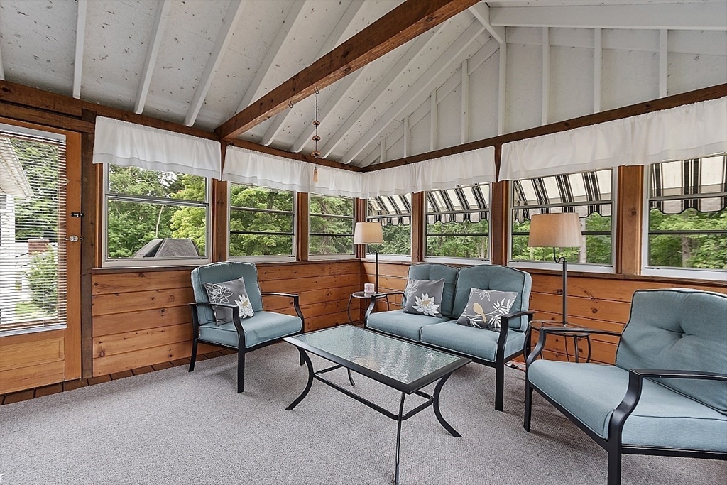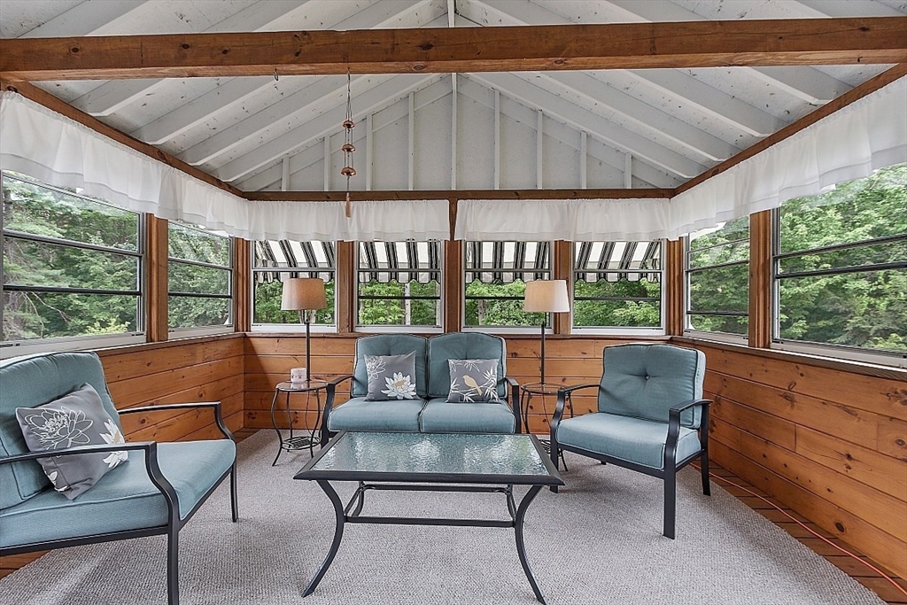!Open House Sat & Sun 1/17-1/18 Noon to 2PM! Set on nearly 0.86 acres of beautifully landscaped grounds, the property features granite steps and pavers leading to the main entry. The main level boasts hardwood floors throughout, a spacious living room with beamed ceiling, and a dining area filled with natural light. The fully renovated kitchen is equipped with granite countertops, custom solid maple cabinets, tile floors, a breakfast bar, and modern appliances. This inviting space opens to an enclosed porch overlooking a large backyard with perennial gardens and a patio, perfect for summer gatherings. Three bright bedrooms with gleaming hardwood floors provide ideal space for family or guests. Both full bathrooms have been updated with modern appointments. For year-round comfort, the home includes a four-year-old, three-zone heating system with a top-of-the-line Buderus stainless steel unit, a Mega-Store holding tank, and a cozy Jotul propane stove.