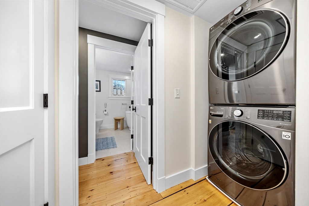 Exquisitely renovated antique in Downtown Hingham.... a stones throw to the train in one direction and town shopping and dining in the other! This home was picked up and placed on a new foundation back in 2005 and converted to 2 side by side residences. Since this time, the home has undergone a full gut renovation and reconfiguration, TRANSFORMING it to the lovely home it is today, while retaining the charm and character of the original antique (wide pine floors, 4 FP's, and original beamed ceilings). Enjoy a high end luxury kitchen, hard to find in homes twice this price! Versatile floor plan w/2 spacious rooms off the kitchen. Current owner has 2 living rooms, but could be a great dining area and living room. Upstairs there are 3 nice sized bedrooms and 2 full baths inc. a beautiful primary suite and laundry. Lovely patio w/ bistro lighting and a fabulous, expansive side yard. Plenty of room to add a garage or Barn! Full basement with lots of storage.