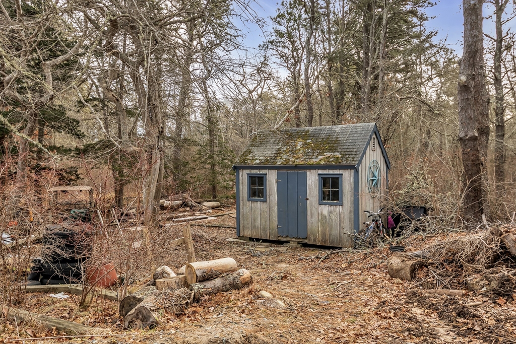This classic Cape Cod farmhouse is bordered on all sides by the Plashes Conservation Land. It offers rare privacy without isolation—perfect for nature lovers seeking serenity. Drive minutes to groceries, restaurants, schools, beaches, and highway access. The lightly wooded, mostly clear and level lot features a semi-circular crushed-stone driveway for easy parking and entry/exit. Inside, the cozy yet efficient layout maximizes space, with hardwood floors, sunny rooms, and smart flow. A convenient half-level laundry room sits between the main floor and the basement. Basement has plenty of storage space, head-height, and easy access to the mechanicals. Enjoy public water (no well worries), plus a roof, septic system, and kitchen appliances all updated ~5 years ago. The property features multiple outbuildings for extra utility. You're going to fall in love with this peaceful retreat.