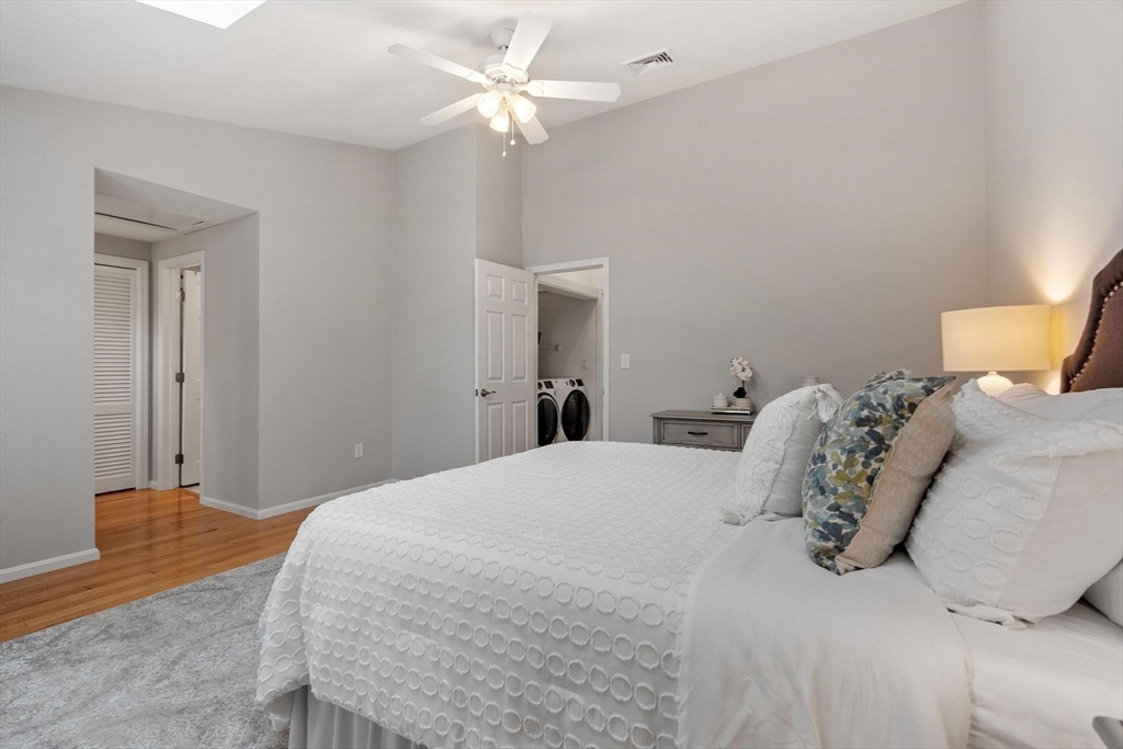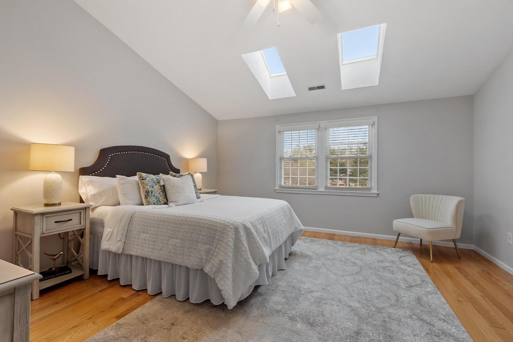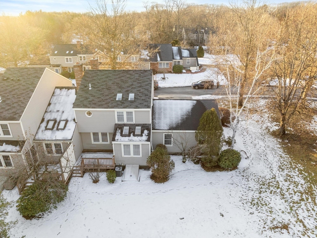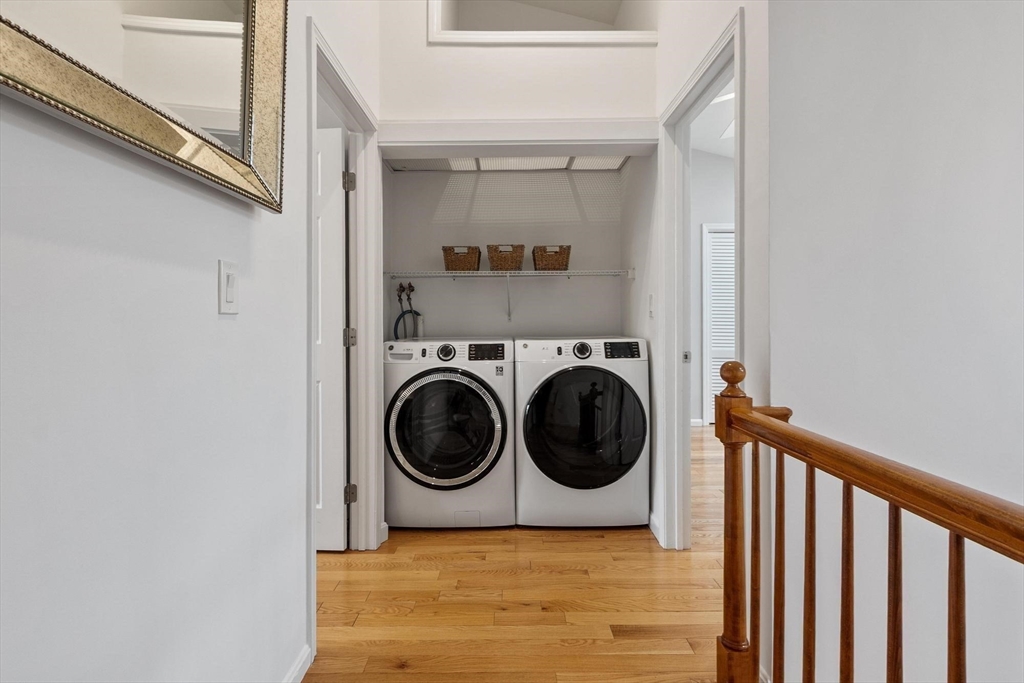 Welcome to Harrington Farms Way! Beautifully maintained end-unit townhome showcasing a dramatic skylit two-story foyer and a spacious, easy-flow layout. The vaulted granite kitchen offers a coffee bar and opens to a private deck overlooking scenic common grounds. A spacious family room with a wood-burning fireplace flows to the dining room—perfect for everyday living and entertaining. Upstairs includes two generous bedrooms, each with ample closet space and private en-suite baths, plus second-floor laundry for added convenience. The finished lower level offers exceptional flexibility with two bonus rooms (office, gym, guest space, playroom, or media room) and a full bath with a jetted tub/shower. Enjoy the Harrington Farms lifestyle with a nearby clubhouse, pool, and tennis courts. An oversized 2-car garage with built-in shelving completes the package! Conveniently located near Rt.9 and I-290, as well as hospitals, shopping, parks, and recreation. OH: Sat, 1/17 1-3 pm, Sun 1/18 11-1 pm