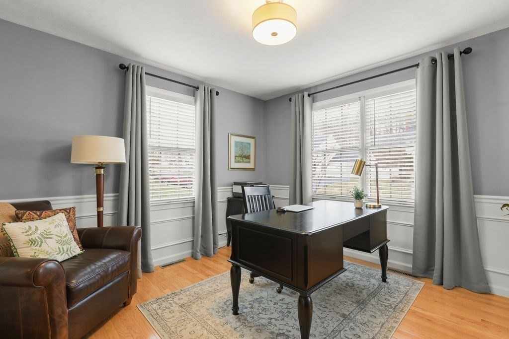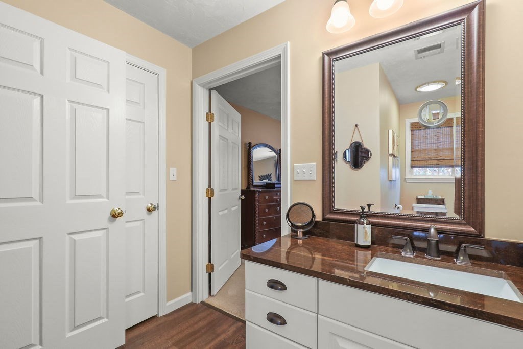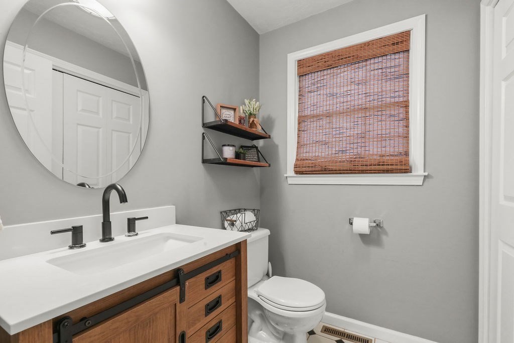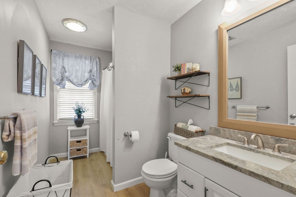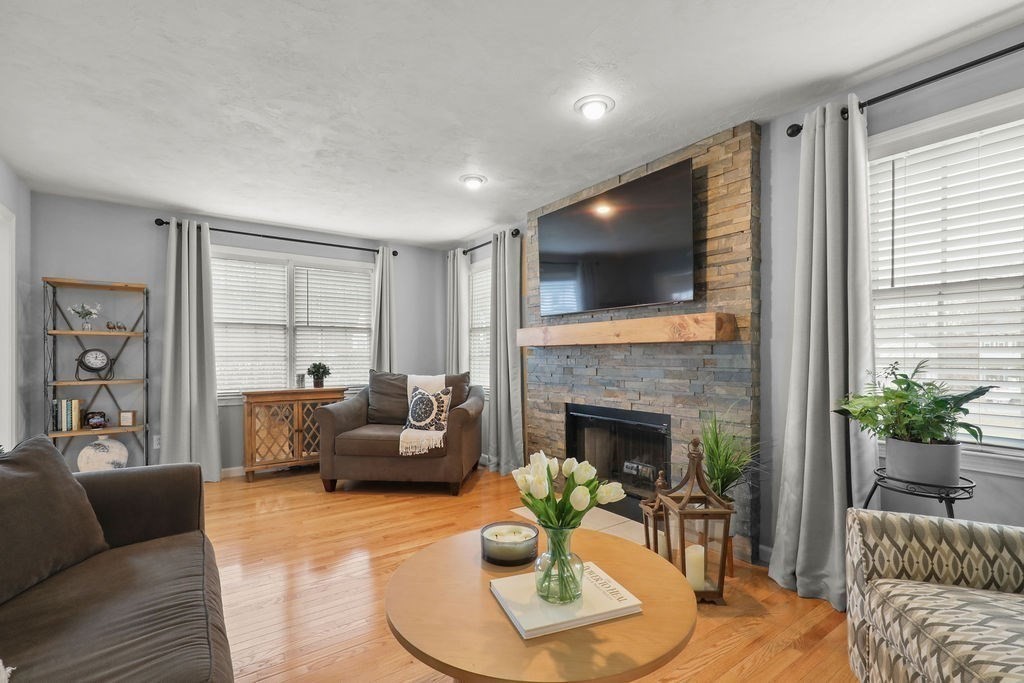 Newly Listed. This beautifully updated 3-bed, 2.5-bath Colonial features an open-concept kitchen with granite countertops, center island, professionally painted cabinets, and new backsplash—perfect for entertaining. Deck opens to a large yard with patio. Front dining room offers flexible use as an office or playroom. Enjoy the fireplaced living room with stone veneer fireplace and mantel. Wood floors throughout first-floor living room, office, and eat-in kitchen. Welcoming foyer with wainscoting and palladium window. Upstairs offers a primary suite with full bath and custom walk-in closet, plus two generous bedrooms and full bath with granite counters. Newer carpet upstairs . Finished lower level includes family room and bonus room; unfinished area provides ample storage. Two-car garage, central air, two-zone heat/A/C with separate units, city water/sewer. Exterior updates include new shutters, arborvitae, and new roof 2025. Located in the desirable Martin School