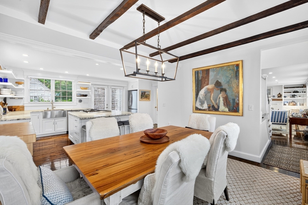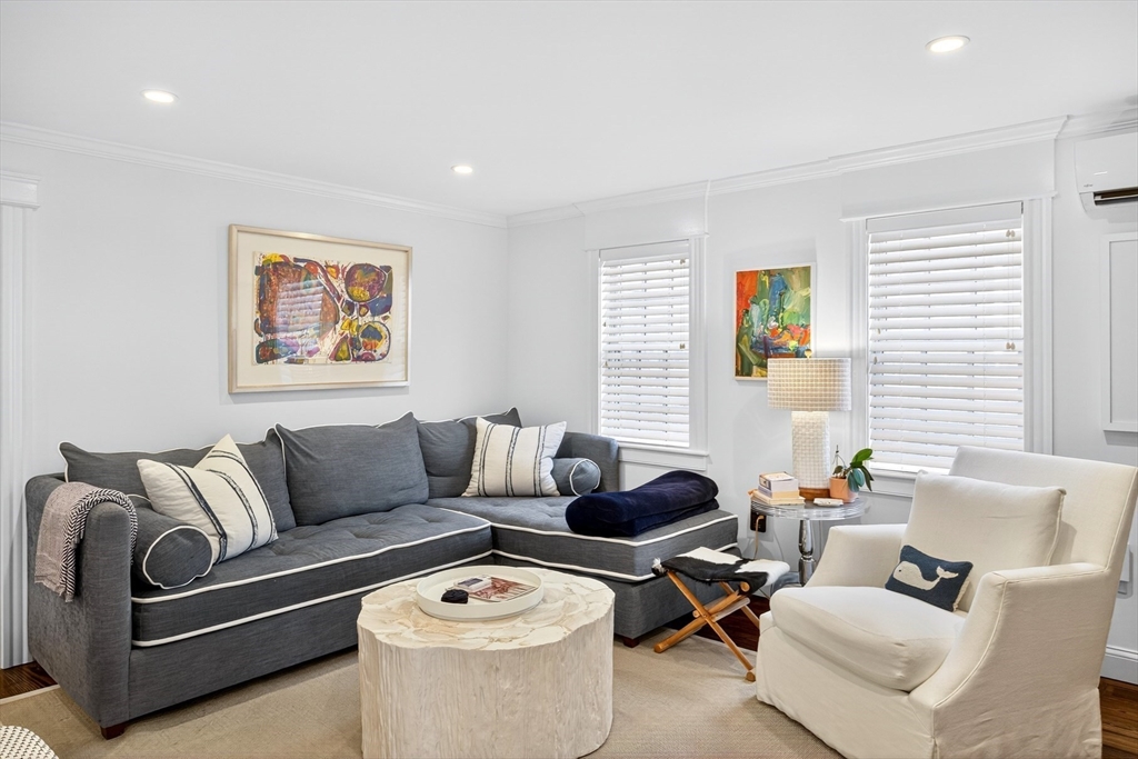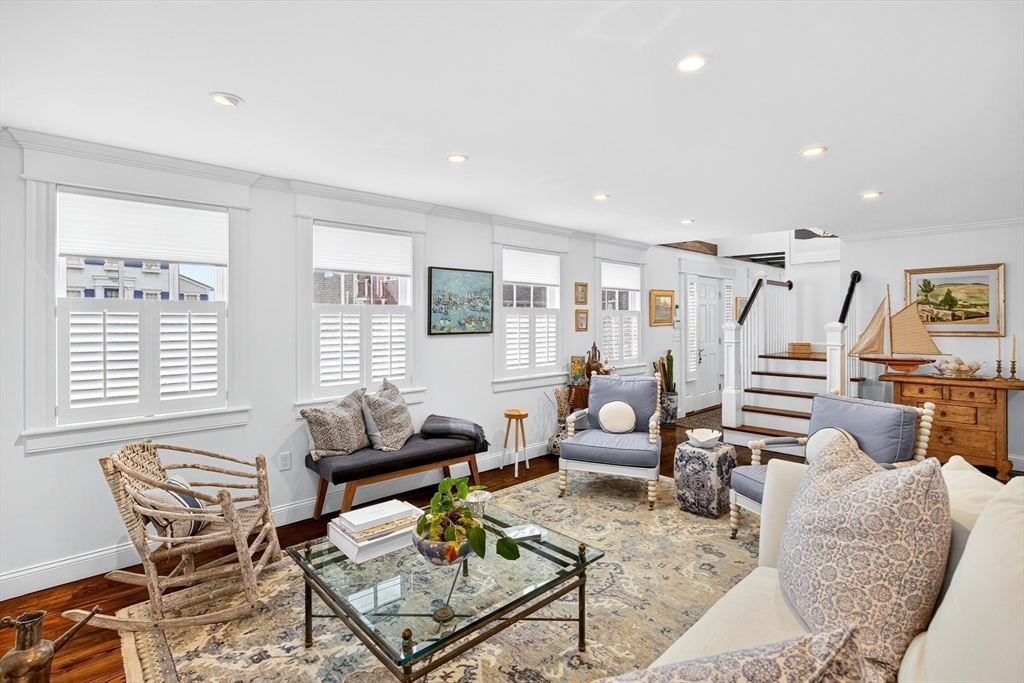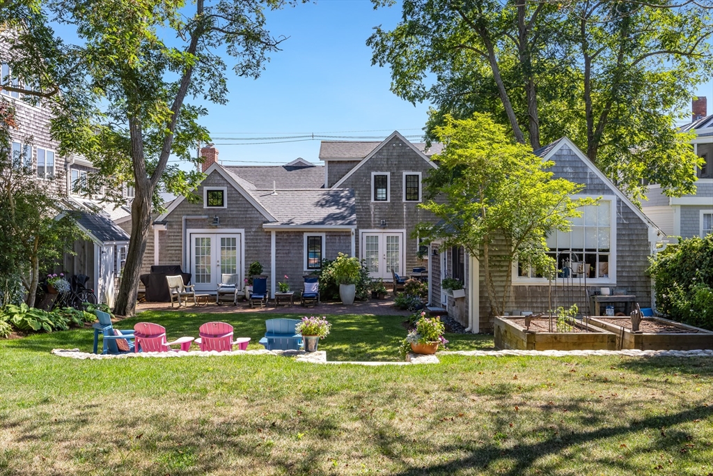 Thoughtfully reimagined for modern living, this East End Provincetown estate combines architectural character with a rare sense of scale and privacy. The four-bedroom main residence welcomes with exceptional curb appeal before opening to a light-filled first floor designed for gathering: a living room anchored by a fireplace, dining room with exposed beams, and a chef's kitchen with dramatic center island and custom finishes. The open layout flows seamlessly to the back patio and expansive lawn—an uncommon luxury in this part of town—ideal for entertaining, gardening, or simply enjoying summer outdoors. The first-floor primary suite is a private retreat with vaulted ceilings, dual closets, and a spa-like bath, complemented by a cozy den and powder room. Upstairs, two bedrooms and a water-view office offer flexible space for guests or work. A charming artist's cottage with kitchen, full bath, and lofted studio provides additional living or creative space.