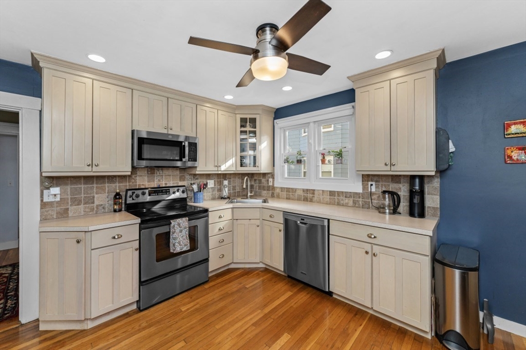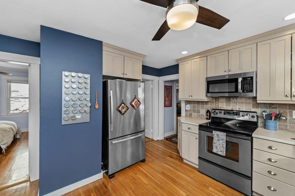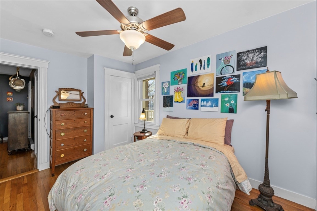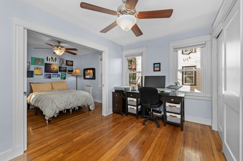 Warm, welcoming and just steps to the Green Line! This inviting 1,023 sq ft condo offers one of the best three-family condo floor plans you’ll see. No wasted space or tight feel in this 3 bedroom, 1.5 bath home. Large open living and dining area perfect for entertaining. Brilliant renovation adding pocket doors connecting the two back bedrooms, giving you the option of a larger suite, guest room or office. Updates include new 2024 heating system and hot water tank. Laundry and extra storage in the basement. Two porches extend your living space and overlook the oversized common yard perfect for relaxing or gathering. Well run pet-friendly association. All within a 15-minute walk of Magoun, Davis, and Porter Squares for trains, shops, and restaurants. A home with the inviting feel you want in a location you’ll love!