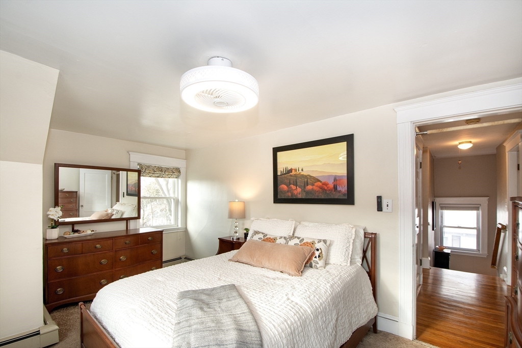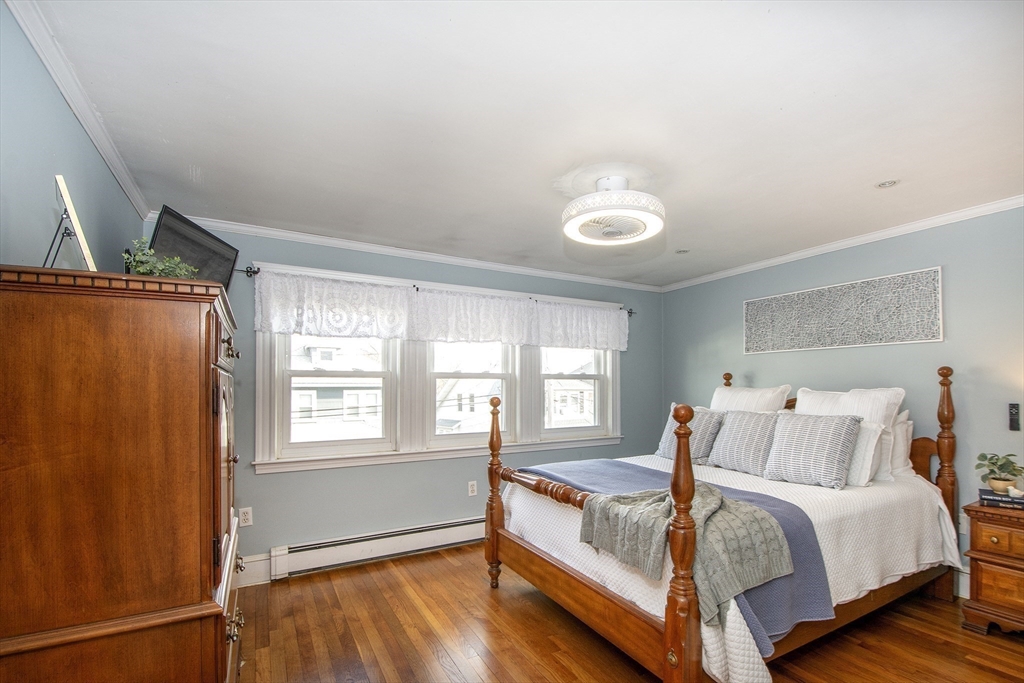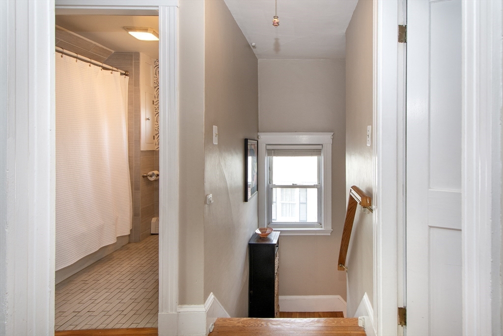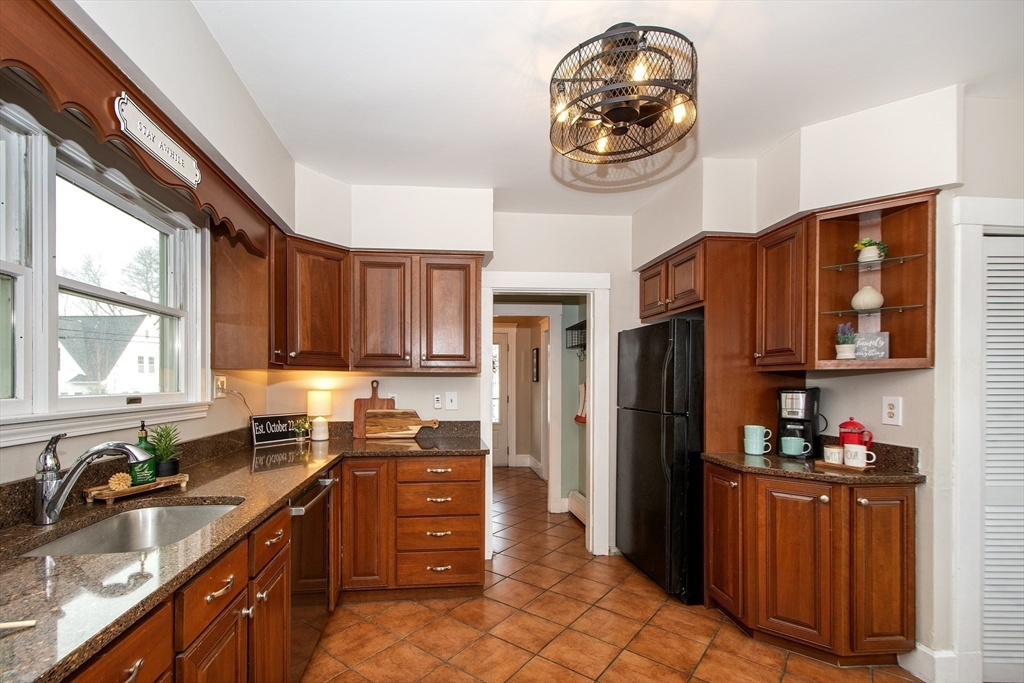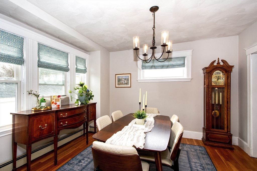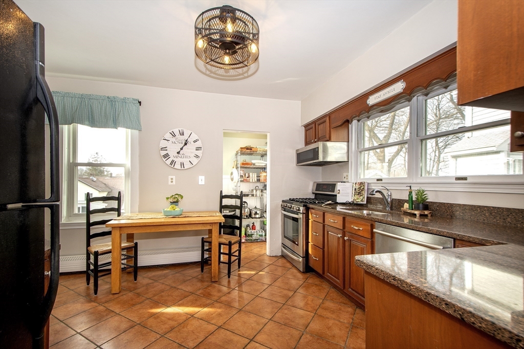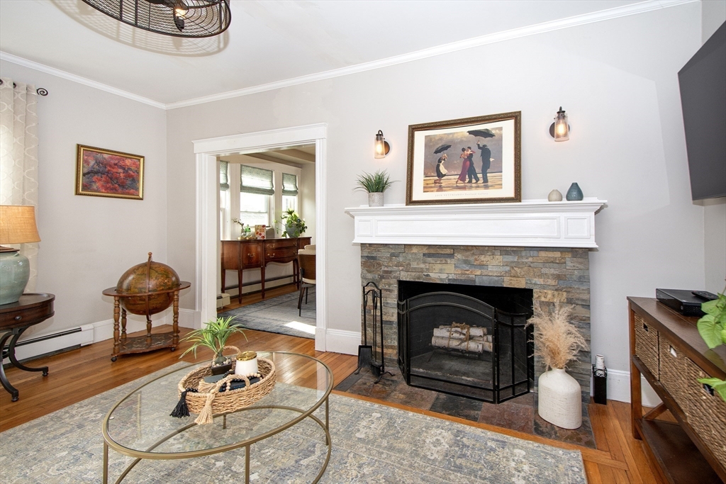 This lovely cape sits in a desirable neighborhood on the Wollaston-East Milton line. Enjoy the nostalgic front porch, perfect for relaxing and watching the world go by. The tiled foyer greets you into a bright, fireplaced living room featuring a lovely mantle & hardwood flooring. The formal dining room is generously sized, ideal for hosting holiday gatherings. It connects to the eat-in kitchen, which boasts granite counters & stainless steel appliances. A convenient pantry has access to the back deck overlooking the lush, fenced-in yard & storage shed. The upper level features three well-appointed bedrooms, all offering ample closet space & full bathroom. The versatile lower level provides extra living space that can be configured as a den, home office or guest room to suit your needs. This level also includes a half bathroom, a laundry area and additional storage. The home is efficiently heated by a Navien combo boiler. This home is perfect for making lasting memories. Welcome home!