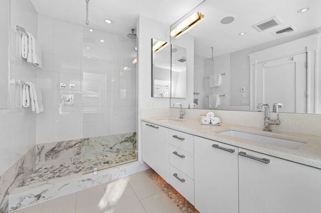 SHOWINGS START IMMEDIATELY. Penthouse bi-level unit with 3 exposures gets morning sunshine to the front, afternoon sunshine to the rear. Main floor has a high quality, efficient kitchen with Thermodore appliances including 6 burner gas cooktop and 256 bottle wine chiller, private balcony with water, electricity & gas, sleek powder room, comfy study, spacious sunny living room with gas fireplace - all this with 10 foot ceilings. The upper floor has 3 bedrooms where the primary bedroom has designer ensuite bathroom with radiant floor heat, large walk-in shower & Biobidet toilet, plentiful closet space with a custom drawer storage unit with a hideaway for laundry baskets. This floor has a guest bathroom and laundry closet with Figidaire washer and dryer. A full stairs leads you to the large roof-deck with gas BBQ grill, water & electricity. There is a high efficiency tankless water heater and rooftop HVAC equipment (replaced in 2024). Garage rental/purchase options are available nearby.
