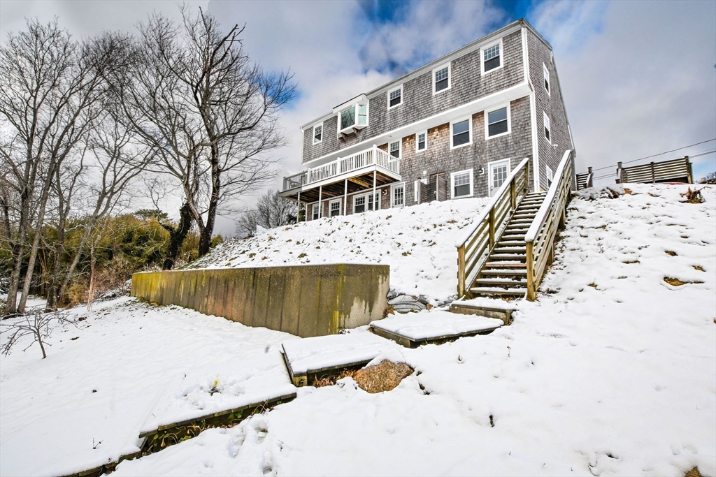 Experience year-round water views & refreshing summer breezes from this beautifully renovated home, perfectly situated near the public beach & downtown area. Thoughtfully updated throughout, this home features a modern kitchen, 4 bdrms & 4 full baths, offering comfort & style. Enjoy easy one-floor living with a spacious deck that captures the serene views & coastal breezes — ideal for relaxing or entertaining. The lower level adds flexibility with a large room featuring a full bath, scenic views, and direct access to its own deck — perfect for guests or extended family. Additionally, the lower level includes a versatile space that could function as an in-law suite, complete with a bedroom, full bath, sitting area with kitchenette, and a private exterior entrance. Outdoors, the yard has been thoughtfully cleared and terraced down to a peaceful marshfront sitting area with ever-changing water views. Beautiful plantings & meticulously maintained lawns complete this exceptional property.
