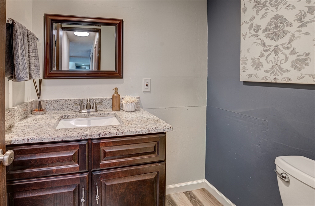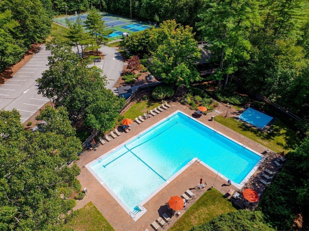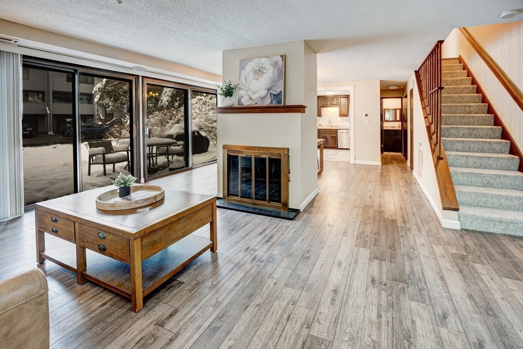 Welcome home to a remodeled and updated Longwood unit with expansive brick patio and flower garden that is perfect for entertaining and enjoying nature. Premium wood-laminate flooring in a cozy living room setting with wood fireplace and a wall of sliders to the wooded exterior. The kitchen has been remodeled to an open concept with granite countertops, stainless steel appliances, modern cabinets and premium vinyl flooring. The dining area and updated half bath complete the first floor. The main bedroom has updated en suite full bath and double closets. There is a second updated full bath, a spacious bedroom and versatile den/guest room/3rd bedroom. Plus a full height attic for storage with new pulldown staircase. Enjoy the carefree lifestyle of the Village of Nagog Woods with clubhouse, 2 pools, 6 tennis courts, playground, playing fields and community events. All this and Award winning Acton schools and Marcus Lewis tennis club membership. The home you've been waiting for!