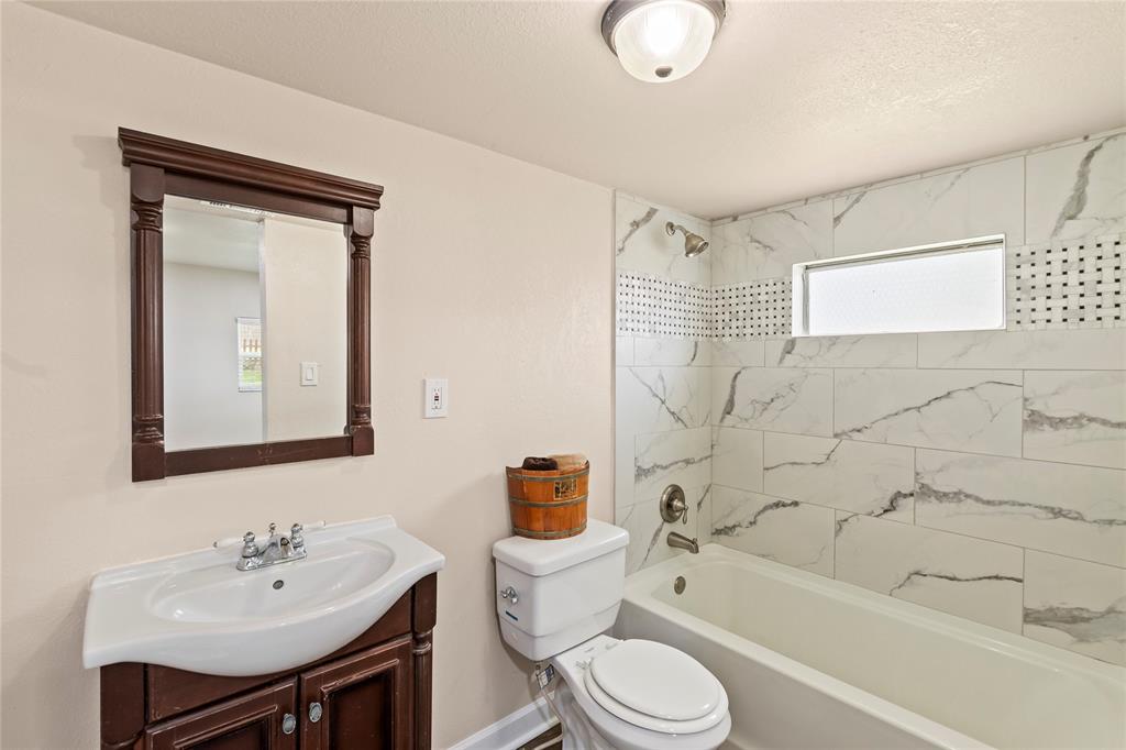 Designed with comfort and functionality in mind, the home offers a spacious layout with two living areas including a light-filled waterside room that opens to a large deck, ideal for gathering with friends and family. The primary suite features a walk-in closet and a full bath with a tile-surround tub shower combo, and recessed lighting adds a warm, updated feel throughout.