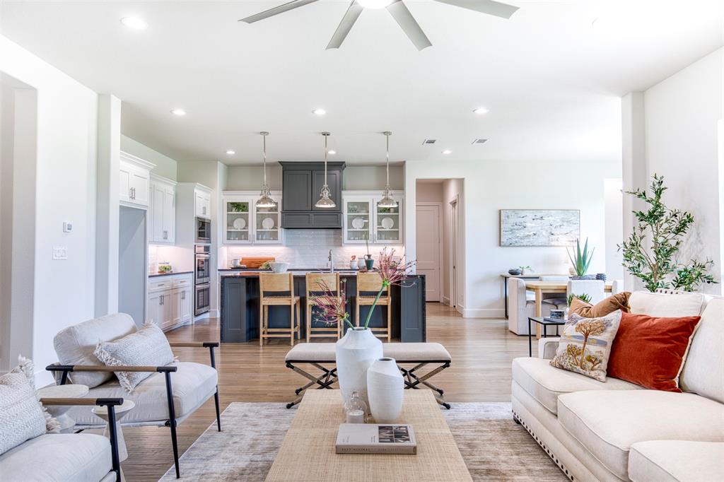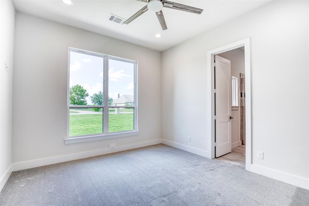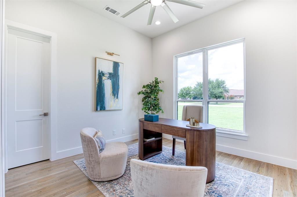 Unparalleled Craftsmanship Meets Modern Elegance in This ALTUM Custom Home. From the moment you arrive, this impeccably built residence makes a lasting impression with its contemporary black-framed windows and a dramatic 9-foot iron frosted glass entry door —setting the tone for the luxurious living experience within. Thoughtfully designed for today's refined lifestyle, the interior features a gracious open concept living area with hand stained hardwood flooring and anchored by a stylish fireplace. Expansive picture windows bathe the space in natural light. The seamless flow into the gourmet kitchen creates a perfect setting for both intimate gatherings and grand scale entertaining. The culinary enthusiast will be inspired by the waterfall-edge granite island, two-tone custom cabinetry, glass-front display cabinets, and built-in spice rack —all complemented by a suite of stainless steel appliances. Just off the kitchen is a spacious pantry that is sure to accommodate all your ingredients for family dinners. The primary bedroom is a sanctuary of serenity, offering a spa-like bath complete with a walk-in frameless glass shower, a freestanding soaking tub, dual vanities, and a luxuriously oversized walk-in closet with custom storage potential and direct access to your laundry area. A private study with closet—ideal for a home office or library is just off the home’s entry. Each secondary bedroom is thoughtfully located and each offers dedicated bathroom access and walk-in closets, ensuring privacy and comfort for family and guests alike. Additionally, ALTUM included piers under the foundation along with spray foam insulation exemplifying quality from the ground up. Unwind outdoors beneath the covered patio, designed for year-round relaxation and al fresco entertaining. A full irrigation system will ensure a healthy and lush yard for your family to enjoy. This home is a statement in timeless luxury and exceptional design.