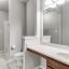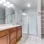 The large kitchen boasts an island and ample space for cooking and entertaining. The adjacent eating area overlooks the patio and greenbelt, providing a serene view for your meals. The master bedroom includes an ensuite bathroom with a huge closet, a vanity with dual sinks, and an oversized shower equipped with a shower head and body sprays.