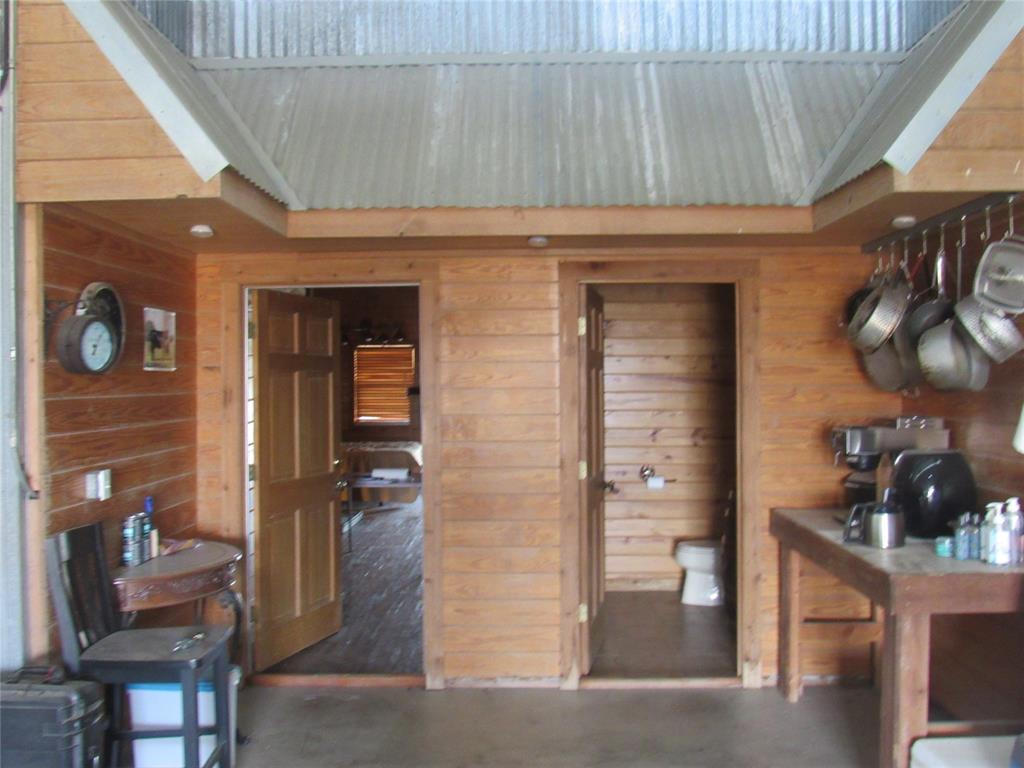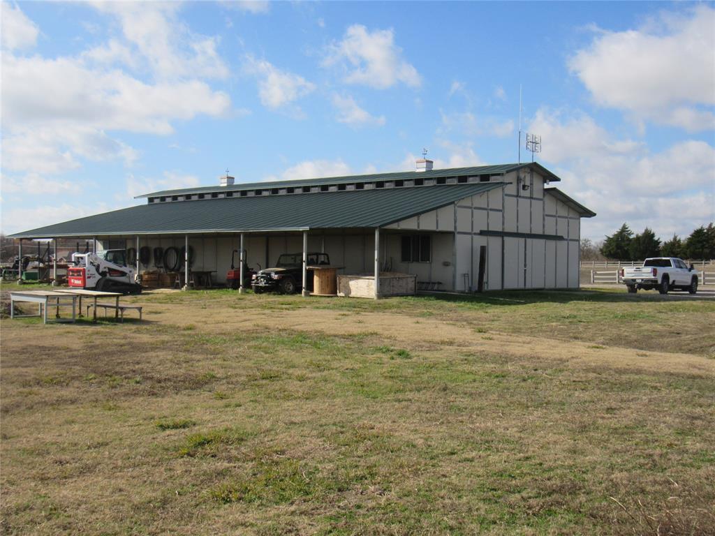 MAIN BUILDING HAS SMALL LIVING, HALF BATH, SMALL KITCHEN, TACK ROOM, WASH RACK. BUILDING IS USED FOR COMMERCIAL LIGHT INDUSTRIAL, BACK HAS A APPROX 2FT OVERHANG, BOTH ENDS HAVE 8 FT DOUBLE SLIDING DOORS, BACK HAS 8 FT DOUBLE SLIDING DOORS.