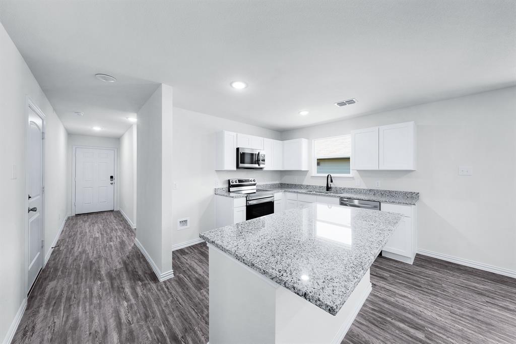 15k seller concession offered! This 4-bedroom, 2-bath home in Greenville’s Labein Villas offers modern design, energy efficiency, and thoughtful functionality across 1,571 square feet. The open-concept layout features a spacious living area, dining space, and a stylish kitchen complete with granite countertops, island seating, walk-in pantry, and stainless steel appliances. The private primary suite includes a walk-in closet and dual-sink vanity with granite finishes, while three additional bedrooms provide flexibility for guests, family, or a home office setup. Enjoy durable luxury vinyl plank flooring in common areas, carpeted bedrooms, and a fully fenced backyard ideal for outdoor living. Located in Greenville ISD, just minutes from dining, shopping, and major thoroughfares, this move-in ready home combines convenience, value, and modern comfort.