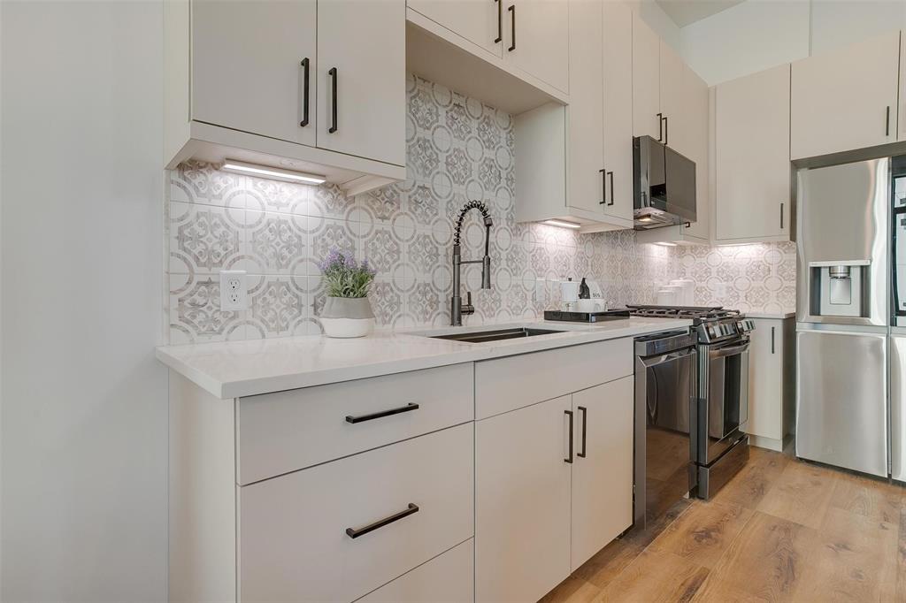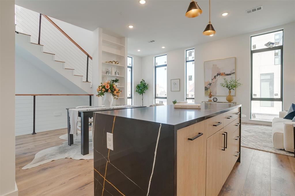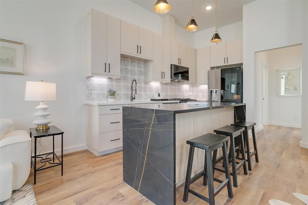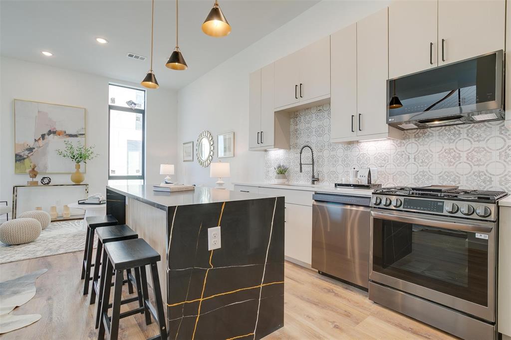 New, modern, and urban townhome within walking distance to Magnolia Ave, South Main, and TCU's new medical school campus. NO HOA FEES! Three bedrooms each with a full bathroom. Primary bedroom on third floor with large walk-in closet and spacious bathroom. Kitchen includes white quartz counters with double waterfall island. Gas range vents to the exterior, under cabinet lighting, and fashionable pendant lights over island. Rooftop patio with gas line for a grill, wired for a security camera and outdoor speaker. Space for a stackable washer-dryer on first and third floors. Wired for security, video, audio system, and data throughout home with central data panel. Living area wired for flat screen tv and electric window shades. 2-car tandem garage includes WIFI enabled door opener and electric vehicle charging port. Turf installed outside of back door. ***Zoning allows for use as a short-term rental***
