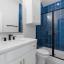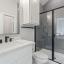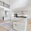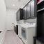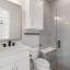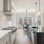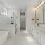 The kitchen is a culinary dream, featuring commercial-grade WOLF appliances, a dramatic quartzite waterfall island, and a magnificent quartz backsplash that extends to the ceiling. The abundance of custom cabinetry ensures both beauty and functionality.