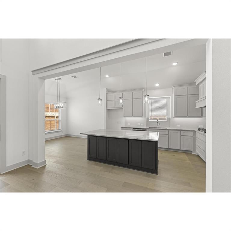 MLS# 20574612 - Built by First Texas Homes - Ready Now! ~ Up To $20K Closing Cost Assistance for Qualified Buyers on select inventory! See Sales Consultant for Details! Open floorplan with incredible family gathering spaces. The gourmet kitchen includes built in stainless appliances, oversized California Island and generous modern cabinetry and lighting with a built-in look around the refrigerator. It boasts a large utility room with built-in cabinetry and enough space for a second fridge or freezer. This home features upgraded hardwood floors throughout the living spaces and primary bedroom. Meticulous detail in the primary suite includes upgraded quartz countertops, freestanding tub and modern fixtures. The first floor includes a study with glass doors and a flex room, great for a formal dining room. The second-floor hosts bedrooms, a game room and media room with dry bar and media closet to tuck away your equipment.