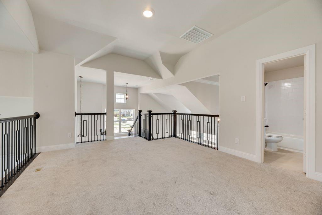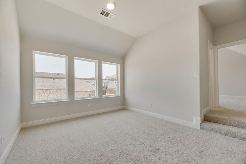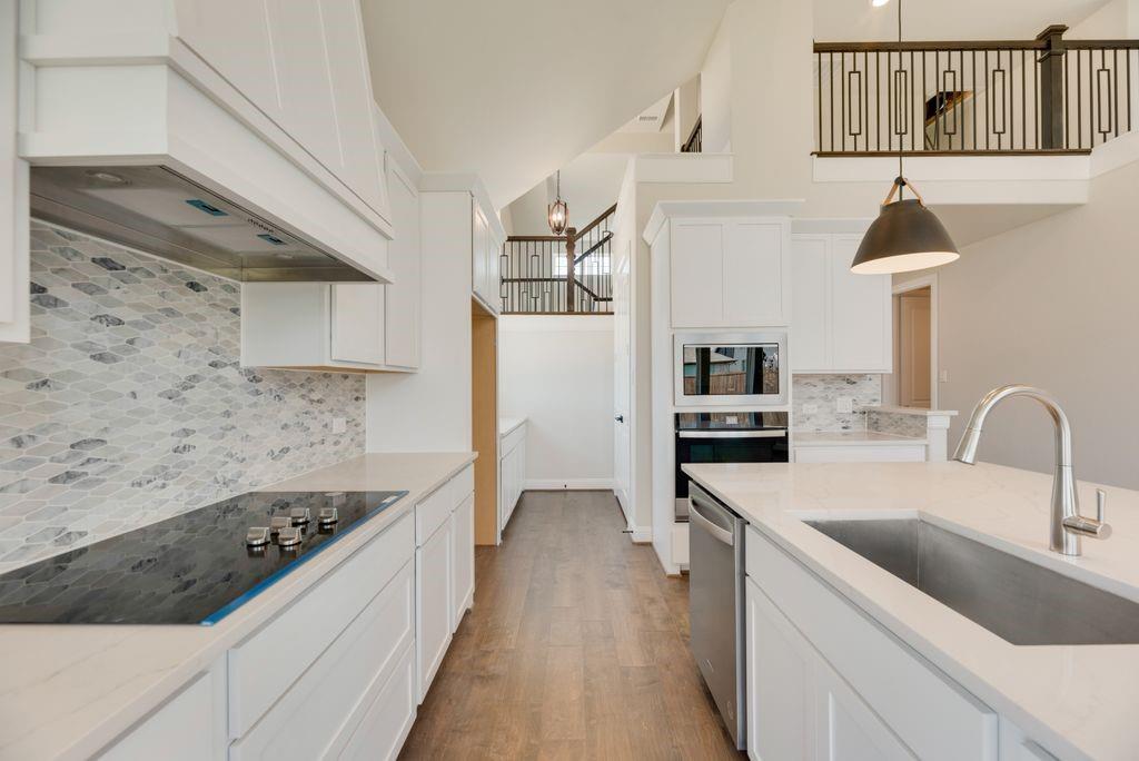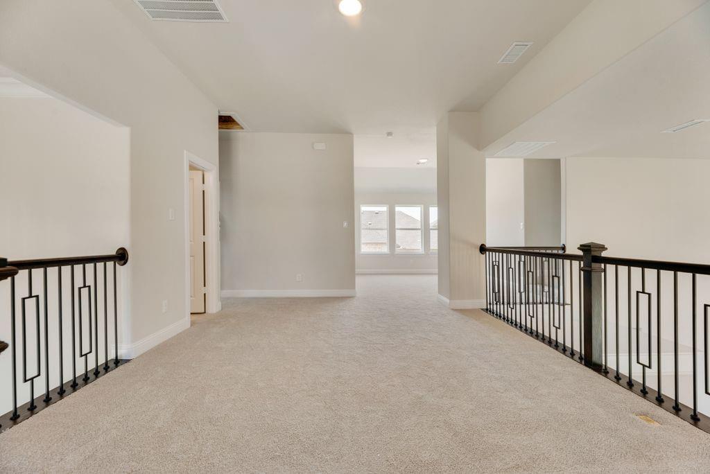 New Grand Home in Justin Crossing Just COMPLETED. No MUD or PID tax!! One block from neighborhood park, playground, dog park and trails toward Reatta Park! New construction home includes full oak staircase w wrought iron balusters, rocker light switches & 8 foot doors downstairs. Craftsman front door. Wood floors through most of 1st floor. Vaulted family room has a cast stone Fireplace. Home Office or Den or Formal Dining. Gather with the family in the kitchen with Shaker cabinets, Omegastone slab tops, stainless steel appliances, tile backsplash, 5 burner cooktop, large walk in pantry, trash can drawer & island. Butlers Pantry. Upstairs has a Gameroom & Media Room ready for the kids, plus 3 bedrooms. Primary Suite has garden tub, double vanities & deco tile shower. with frameless glass surround Energy Star certified w R38 & radiant barrier roof