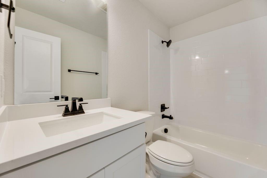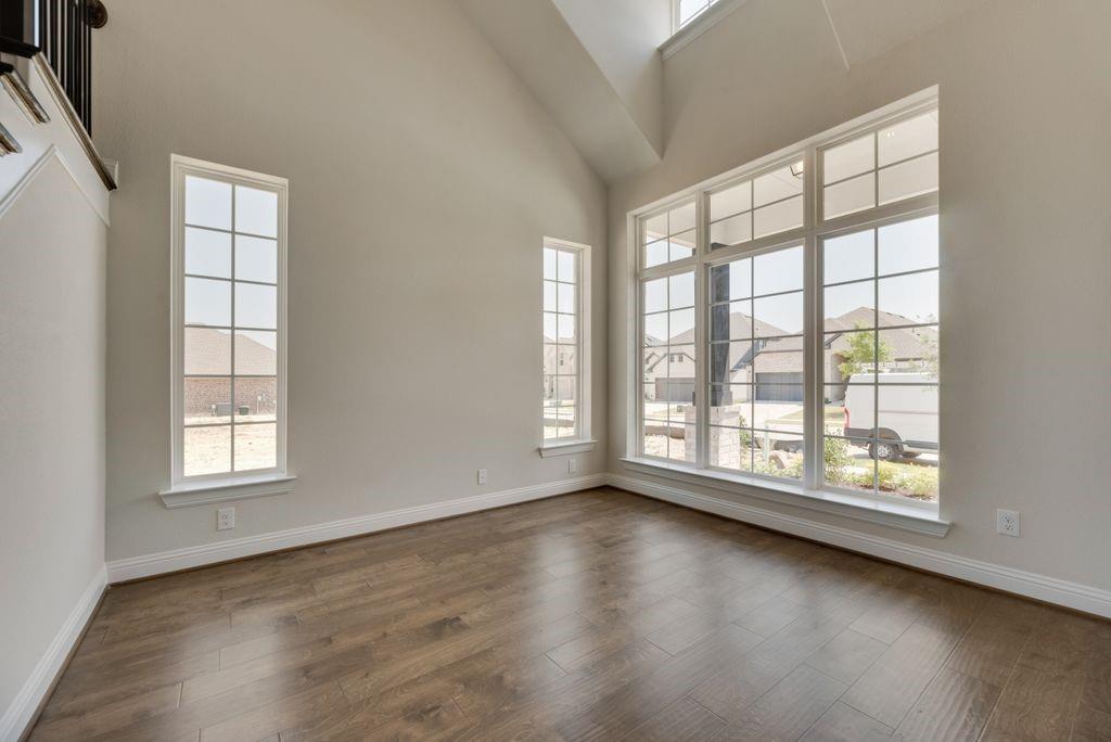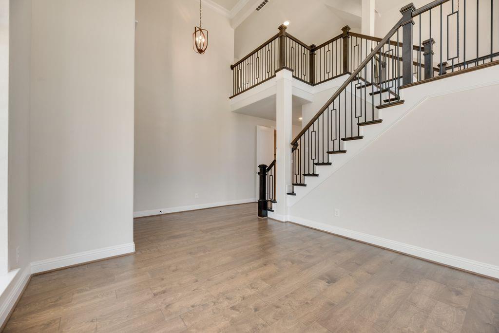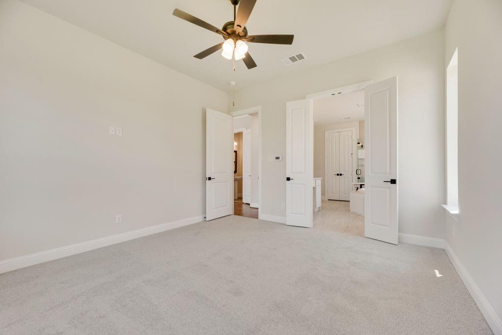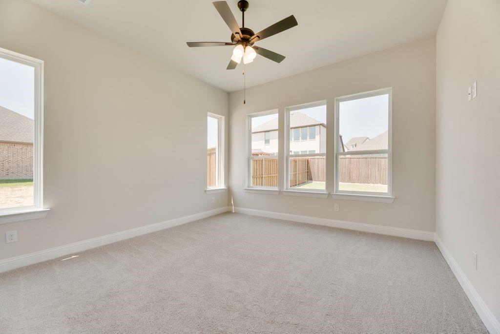 New Grand Home in Justin Crossing Just COMPLETED. No MUD or PID tax!! One block from neighborhood park, playground, dog park and trails toward Reatta Park! New construction home includes full oak staircase w wrought iron balusters, rocker light switches & 8 foot doors downstairs. Craftsman front door. Wood floors through most of 1st floor. Vaulted family room has a cast stone Fireplace. Home Office or Den or Formal Dining. Gather with the family in the kitchen with Shaker cabinets, Omegastone slab tops, stainless steel appliances, tile backsplash, 5 burner cooktop, large walk in pantry, trash can drawer & island. Butlers Pantry. Upstairs has a Gameroom & Media Room ready for the kids, plus 3 bedrooms. Primary Suite has garden tub, double vanities & deco tile shower. with frameless glass surround Energy Star certified w R38 & radiant barrier roof