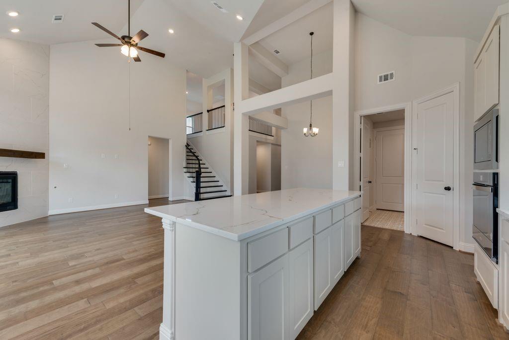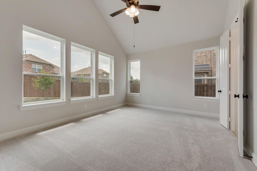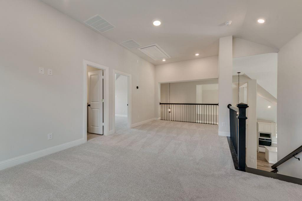 New Grand Home JUST COMPLETED in master planned neighborhood perfect for making friends with Swimming Pool, playground, catch & release fishing pond & bike trails. North facing one & half story home w 4 bedrooms downstairs, vaulted family room, upstairs Gameroom, & Media Room. One bedroom down can also be a home office or nursery. Custom features include full oak staircase w wrought iron spindles, Craftsman style front door, 8 foot interior doors, wood floors, decora rocker switches & 2 story tile Fireplace. Open concept kitchen has Omegastone slab tops, Shaker cabinetry, 5 burner gas cooktop, full bowl silgranite sink, trash can drawer, pots & pans drawers & island. Primary Bath has a free standing tub, rectangle sinks & frameless glass tile shower. Security & sprinkler system. Energy Star w R38 & 2 x 6 wall construction. New construction with All warranties