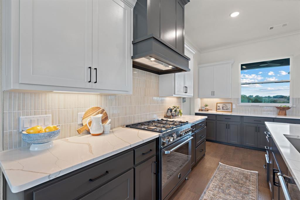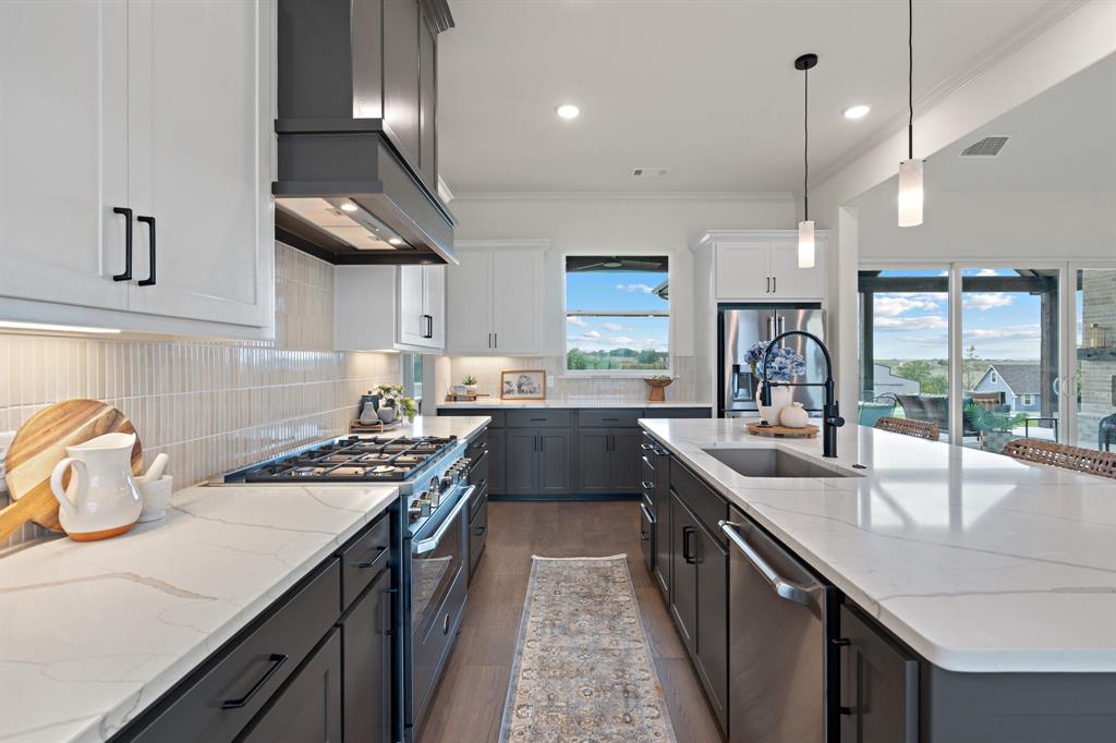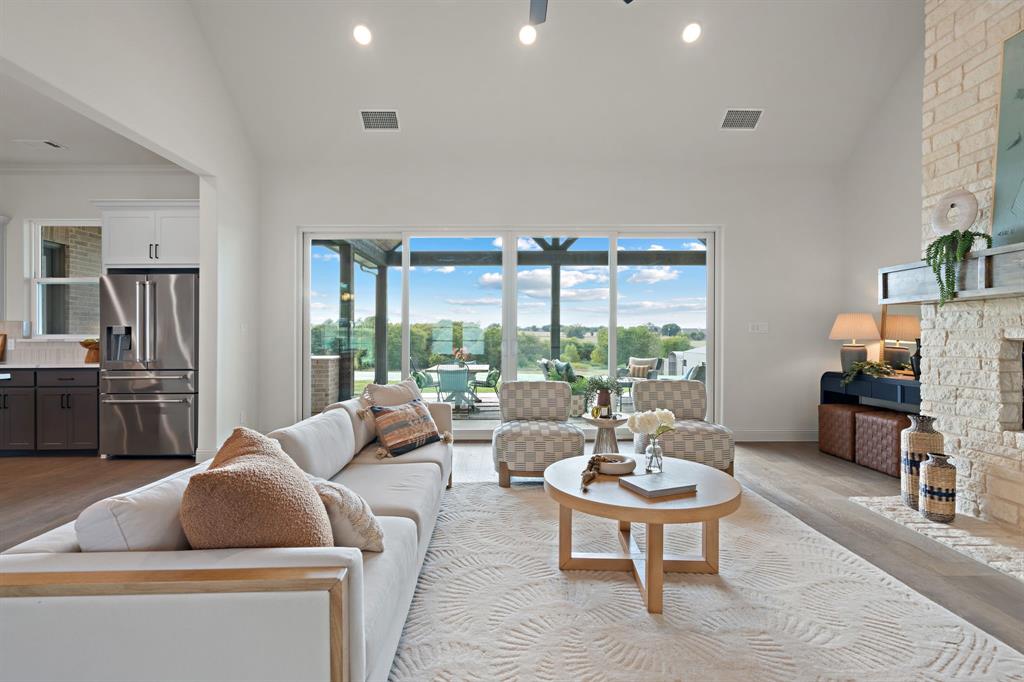 Structured Custom Homes presents another exquisite floorplan set to grace Highland Meadows subdivision in Rhome, TX! Nestled on 2.5 acres of serene countryside, this home epitomizes spaciousness and functionality. Every detail has been meticulously designed to enhance your living experience. Step inside to discover a grand family room with floating shelves, setting the stage for contemporary elegance. The gourmet kitchen is a culinary haven, boasting an expansive island along with a pass-through countertop that seamlessly connects to the outdoor kitchen area, ensuring effortless entertaining and dining experiences. The bedrooms are generously sized, each accompanied by walk-in closets to accommodate your storage needs. The primary bath is a sanctuary in itself, featuring a dual walk-in shower entrance, a double vanity, and a luxurious free-standing tub. Outside, an exquisite outdoor fireplace area awaits, that invites you to unwind and rejuvenate.