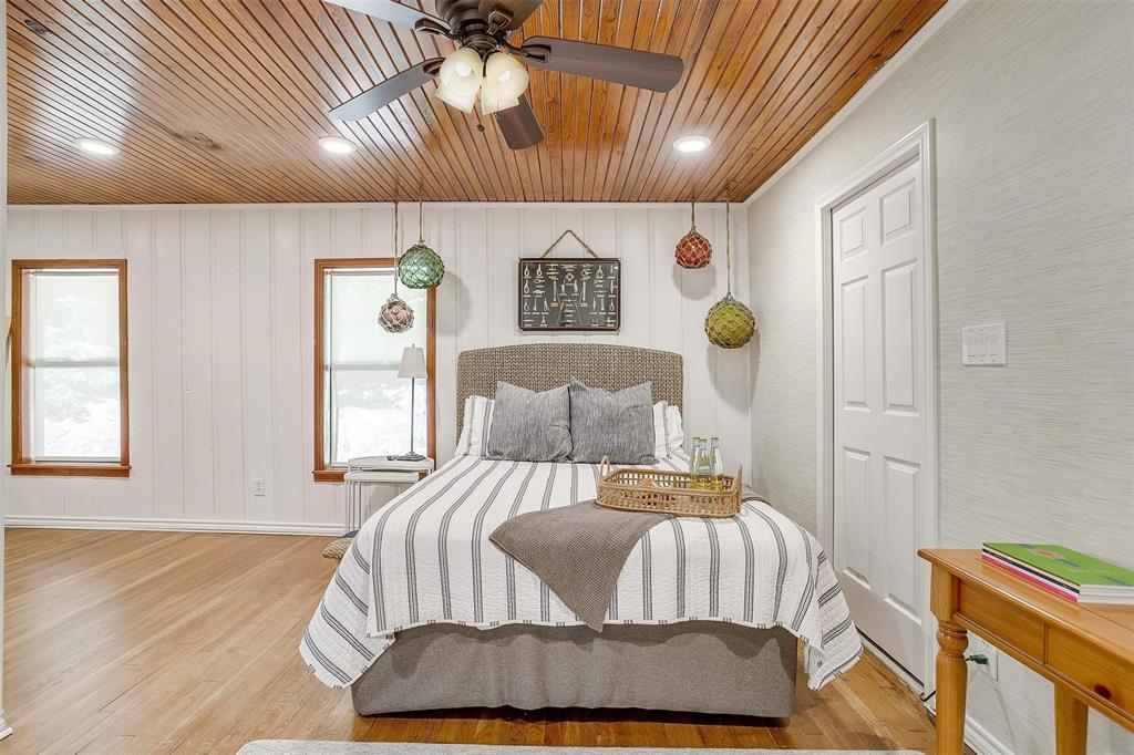 Positioned along one of the most coveted shorelines on Eagle Mountain Lake, this 5.5-acre legacy estate consisting of a main residence, lodge, & fully-remodeled original cottage is a rare offering blending timeless architecture & extraordinary outdoor living. Just 9 homes from the renowned Fort Worth Boat Club, you'll have coveted access to one of Texas’s oldest & most prestigious yacht clubs. The 6,600SF Mediterranean inspired main residence exudes refined character, with a clay tile roof, stucco exterior, stone accents, & hand-hewn cedar beams. Inside, expansive windows frame open-water views. The chef’s kitchen features Thermador & Sub-Zero appliances, quartz countertops, custom cabinetry, & high-end finishes. In the primary suite, you'll find dual vanities, a soaking tub, & boutique-style dual closets. The outdoors is complete with a designer pool & spa, putting green, full outdoor kitchen tucked beneath a tropical palapa, & a lush lawn that rolls gently to the water’s edge. The newly reconstructed seawall features hand-laid flagstone, concrete reinforcement, & a sunken fire pit. At the shoreline, a 2-story dock offers a climate-controlled game room built directly over the water, complete with a hand-carved wood bar. Combined with all-TREX decking & Spider Docktor pest control system, this dock is one of the most unique & luxurious setups on the lake. The acreage is both beautiful & exceptionally usable. Additional features include a private fishing pond and open space for recreation or events. The 5,000-square-foot hillside guest lodge includes 3 identical ensuite bedrooms & expansive open-concept living. The 1,300-square-foot remodeled original cottage offers 2 additional bedrooms. A 50' x 40' insulated workshop & a separate 45’ x 25’ equipment barn ensure ample storage for gear, vehicles, & watercraft. Whether you envision it as a full-time lakefront haven or an unforgettable weekend retreat, this Eagle Mountain Lake estate offers a rare legacy opportunity.