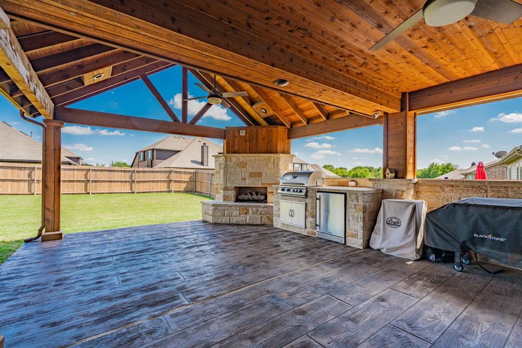 Where space, style, and comfort meet in the heart of this highly sought-after Heartland community. This stunning 4-bedroom, 3 full bath home offers the perfect blend of functionality and luxury, designed to meet the needs of today's modern lifestyle. Step inside and be greeted by an open concept layout that features two expansive living areas and a versatile flex room that can serve as a home office, extra dining, or game room. The thoughtful floor plan includes a private guest suite and a spacious primary retreat with a spa-inspired ensuite and large walk-in closet. Entertain effortlessly in the main kitchen, which opens seamlessly to the main living and dining areas. Then take the party outdoors to the show-stopping custom patio - complete with a fully equipped outdoor kitchen, built in grill, and a cozy fireplace. Whether you are hosting weekend barbeques or enjoying quiet evenings by the fire, this backyard was made for making memories. Located in a master-planned community known for its resort-style amenities - including pools, parks, trails, and a private lake. This home checks every box for comfort, convenience, and lifestyle. Don't miss your opportunity to own a like new, move-in-ready home that truly has it all. Schedule your private tour today and experience what life could be like if you owned this home.