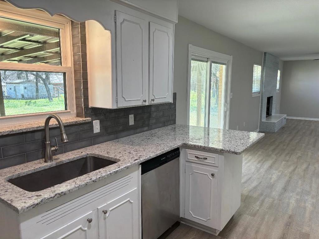 Spacious updated brick home in the desirable Western Hills neighborhood. Very close to Palo Pinto General Hospital and other medical facilities. Only 2 miles from downtown Mineral Wells. Open floorplan with large bonus room that could be utilized as a large 4th bedroom or game room. New flooring throughout. New granite countertops, cooktop, and range hood in the kitchen. Large open living and dining area with built in bookcase, LED lighting, and a brick wood burning fireplace. Both bathrooms have been updated. For efficiency, the windows are newer vinyl windows with storm windows. Large fenced backyard with alley entrance to covered carport with workshop. The backyard also contains a newer modular storage building.