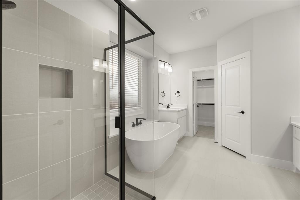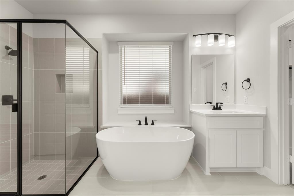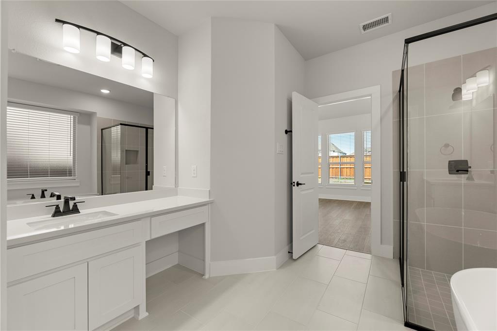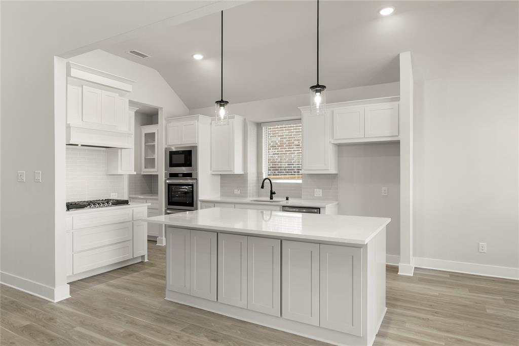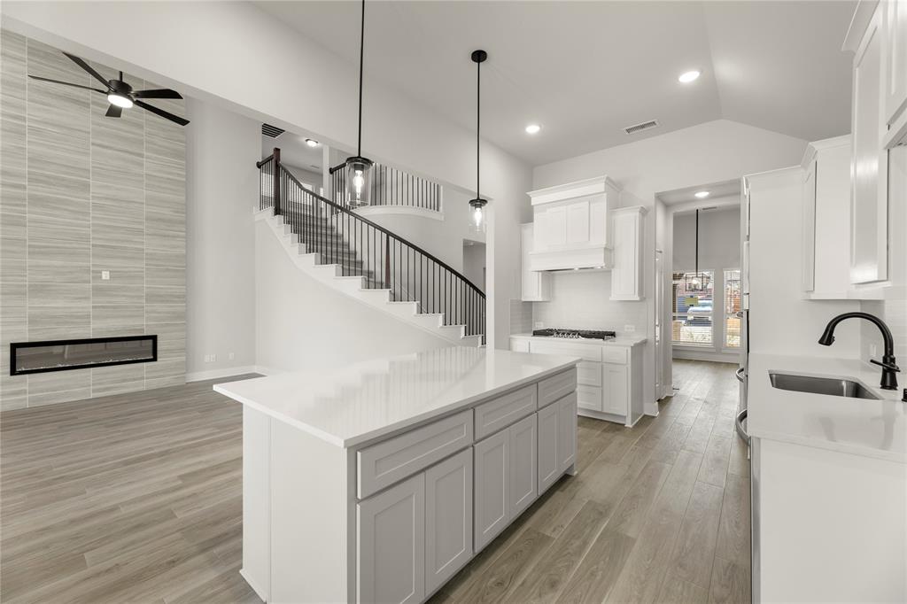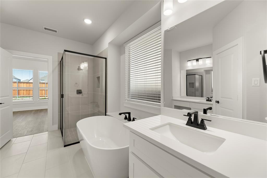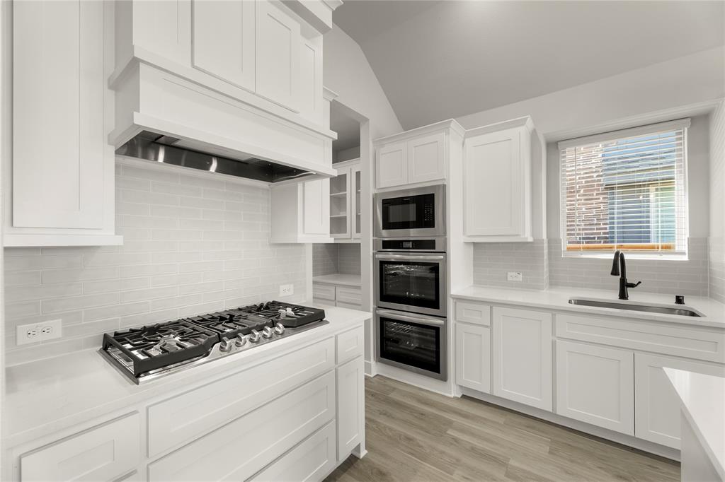 MLS# 20599952 - Built by First Texas Homes - Ready Now! ~ Up To $20K Closing Cost Assistance for Qualified Buyers on select inventory! See Sales Counselor for Details! Do not let the square footage fool you, this house has everything! Custom elevation with stone, cedar accents and front porch. Spacious dining upon entry, with butler's pantry to the kitchen. 18ft high ceiling with lots of natural lighting, multi-slide door at extended covered patio, fireplace bumps out to ceiling at the family room. Luxury vinyl planks throughout first floor, including kitchen and dining. Modern upgraded white kitchen with matte black fixtures, cabinet and appliance upgrades and white quartz. Primary suite includes upgraded countertops with undermount sinks, 3x4 shower and freestanding tub. Upgraded carpet at secondary bedrooms, stairs, game room and media room.