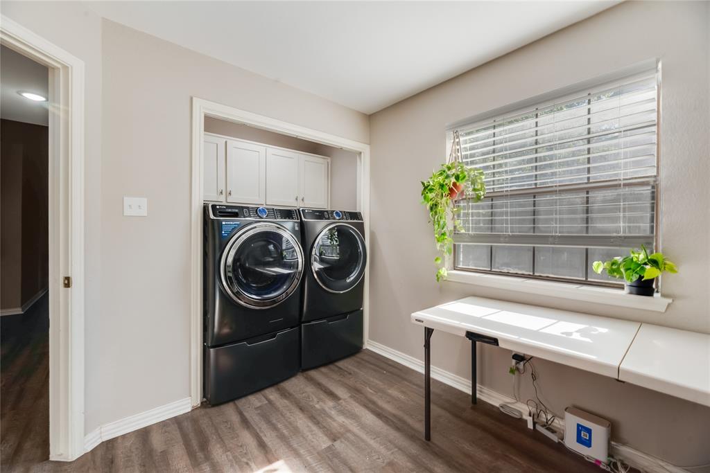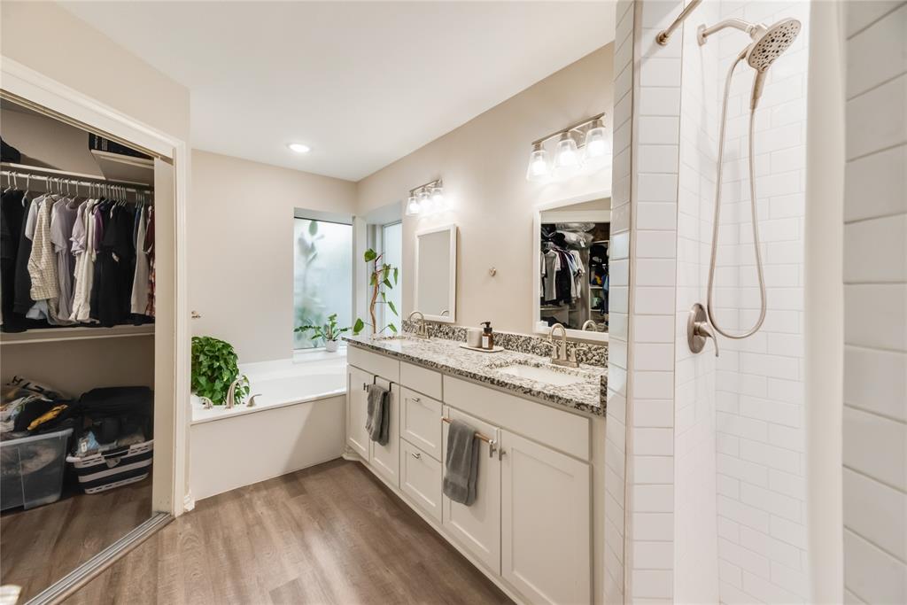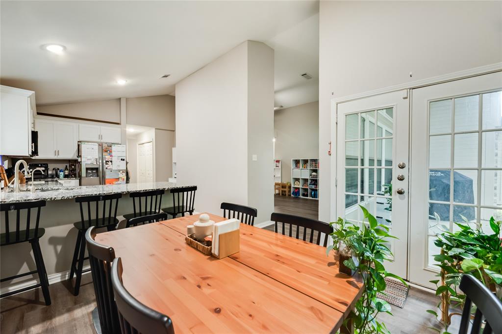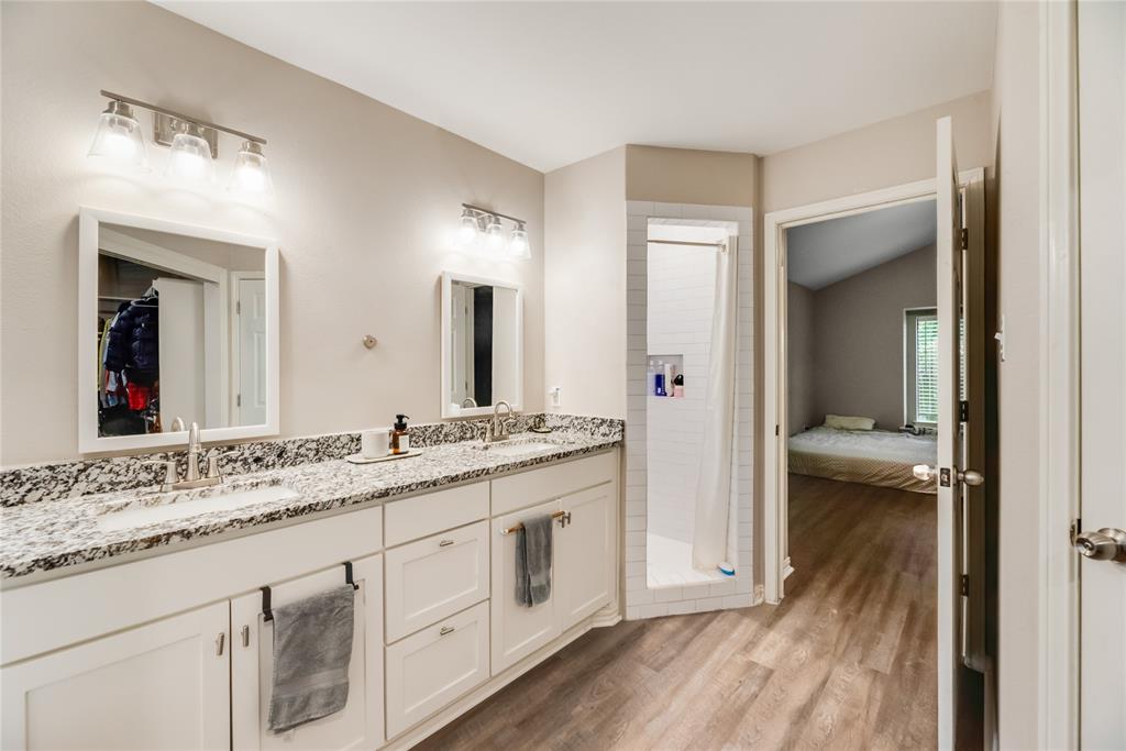 This two-story residence, built in 1985, offers approximately 2,334 sf of spacious living on a generous 0.46-acre lot. 3 bedrooms, including two primary suites. 3 full bathrooms & 1 half bath for added convenience. Striking vaulted ceilings greet you in the foyer and living areas, enhancing the open & airy ambiance. A cozy fireplace anchors the living room—perfect for chilly Texas evenings. Thoughtful, open-concept layout seamlessly connects the living, dining, & kitchen areas equipped with sleek, modern white cabinetry & granite-style countertops, mirrored in the bathrooms for a cohesive design. Two Primary Suites. The main suite is expansive, featuring a spa-like en-suite bathroom & a sizable walk-in closet. Upstairs, another spacious bedroom boasts its own en-suite bathroom & walk-in closet—ideal for guests or multi-generational living. Positioned on a large, irregular, and level lot with trees, the property offers excellent potential for gardening, entertainment. The fully fenced & landscaped backyard ensures privacy & low maintenance. Attached 2-car garage, accessible directly via the driveway. This home beautifully balances thoughtful design & functional layout. With elegant finishes—such as vaulted ceilings, granite-style countertops, and luxury vinyl plank flooring—it delivers both style and comfort. The dual primary suites add flexibility and privacy, while the expansive lot provides a canvas for personalization. It’s a compelling choice whether you're looking for a family retreat, a home for multi-generational living, or simply spacious comfort in Duncanville.