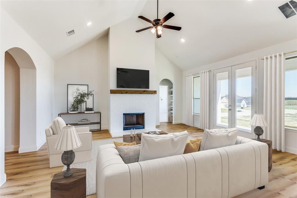Introducing the Easton I by Clarity Homes. This stunning new French home features luxury vinyl plank wood-style flooring throughout the main living areas, a chef’s kitchen with Quartz countertops, stainless appliances, gas cooktop, double oven, and a large eat-in island. The living room offers vaulted ceilings and a cozy brick fireplace with raised hearth and mantle.