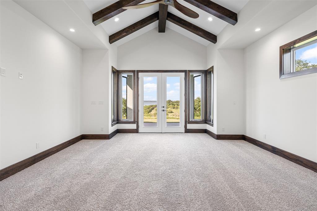Luxurious new 5 bedroom, 6.5 bathroom showplace situated outside city limits on OVER 3 acres with breathtaking lake views of Lake Granbury & backing to a pond. The kitchen is a culinary enthusiast's dream, featuring Soapstone Leathered Granite countertops, a massive walk-in pantry & a generously sized butler's pantry featuring additional oven, additional dishwasher, and a large side-by-side refrigerator & freezer. Exquisite custom woodwork, multiple ice makers & tankless water heaters add convenience & efficiency to daily living. Thoughtful mother-in-law suite with separate entrance. Each of the spacious bedrooms has an ensuite bathroom. Entertain in style in the game room, complete with striking ceiling beams or the media room upstairs, each featuring a wet bar. Office ensures a view with stylish and modern glass wall, while the gym area offers a perfect spot for your workouts. Enjoy an outdoor kitchen and fireplace for socializing & relaxing. Practical features include spray foam insulation, 3 car garage with an epoxy floor & stairs leading to attic storage, as well as circle driveway for ample parking. Distinguished lifestyle & refined living at your fingertips! Welcome home!