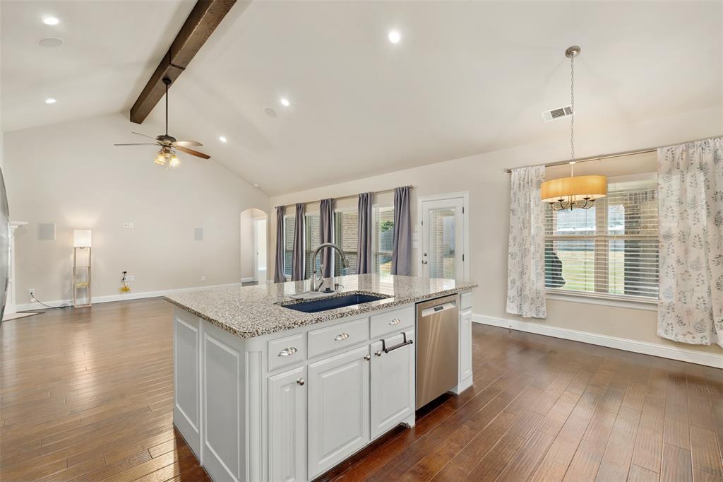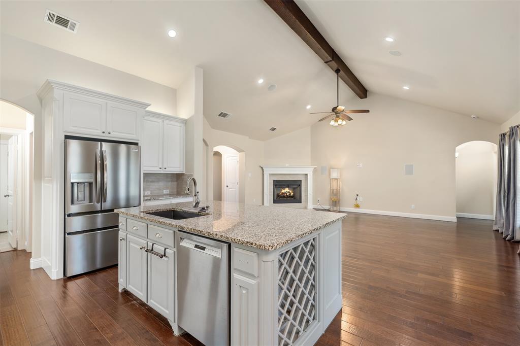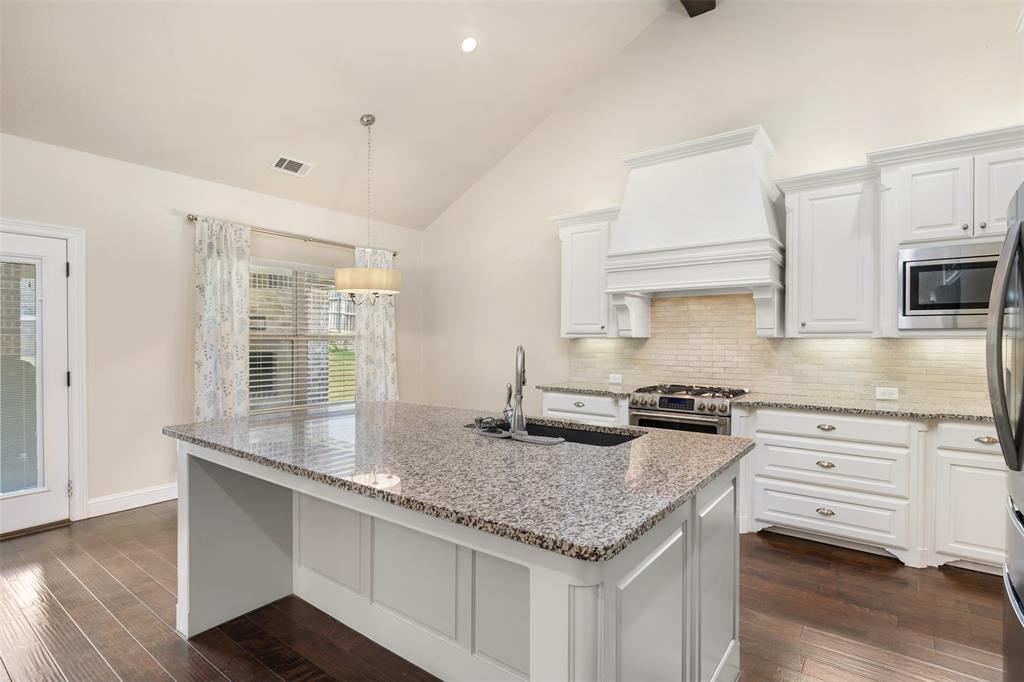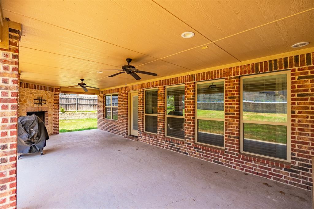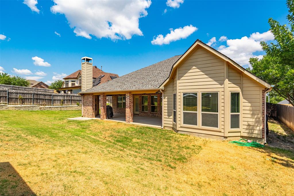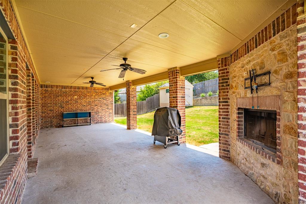 Welcome to this custom-crafted brick-and-stone beauty in the highly sought-after Hills of Lake Country—just minutes from Eagle Mountain Lake, top-rated public and private schools, and a variety of dining and shopping options. From the moment you step through the beautiful wood entry door, you’ll be greeted by an open, airy living space with vaulted ceilings, gleaming hardwood floors, and a cozy fireplace. The chef’s kitchen seamlessly connects to the living area and casual dining area. Features include granite countertops, a gas cooktop, double oven range, new dishwasher, built-in microwave, and a spacious prep island—perfect for both everyday cooking and entertaining. Neutral finishes throughout make it easy to make the space your own. The large primary suite is privately tucked at the back of the home, offering dual vanities, a soaking tub, a walk-in shower with overhead rain feature, and a generous walk-in closet. Three additional bedrooms provide room for family, guests, or a flex space—plus the formal dining room with glass French doors can easily serve as a dedicated workspace. Step outside to one of the home’s most impressive features—an expansive covered back porch with its own fireplace, ideal for year-round enjoyment. The backyard offers plenty of space for play or pets, plus a storage shed and gated access from the extra driveway parking pad. Additional highlights include surround sound in the living area, a wired security system, and a roof just three years young. This home blends comfort, craftsmanship, and convenience in a location you’ll love. Schedule your private tour today and see why it’s the perfect place to call home!