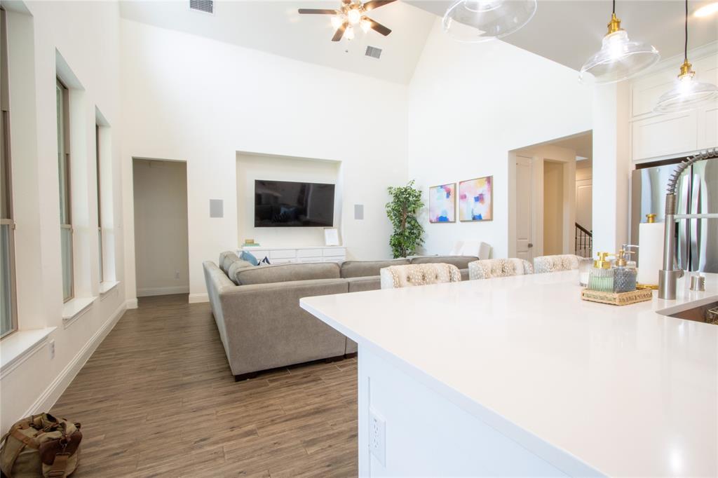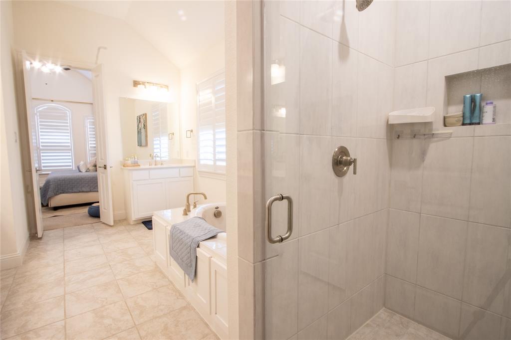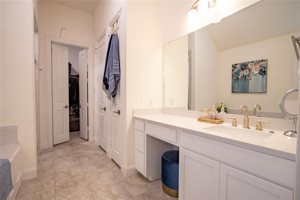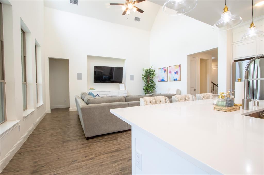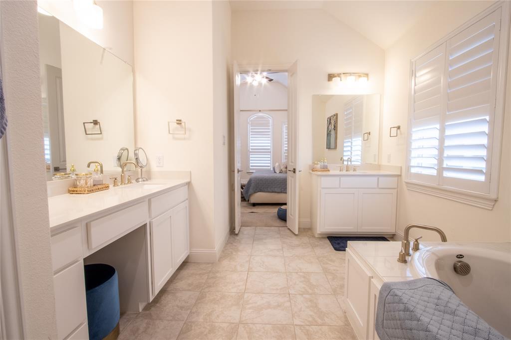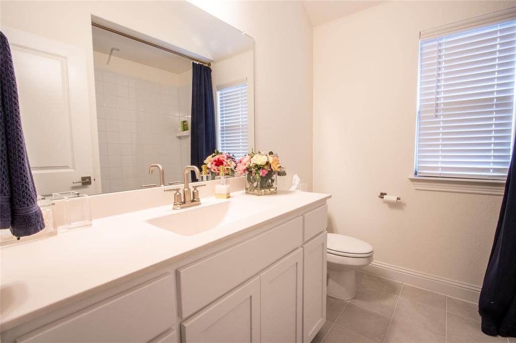 Welcome to this beautifully updated, move-in ready home located in the highly sought-after Argyle ISD. Tucked away on a quiet cul-de-sac, this spacious residence offers a functional open floor plan with just under 3,000 square feet of thoughtfully designed living space. With 4 bedrooms, 4.5 bathrooms, an office, a large utility room, game room, and abundant storage, this home checks every box. The first floor features a spacious layout with soaring ceilings and abundant natural light. The chef’s kitchen is a dream, showcasing sleek white cabinetry, quartz countertops, and stainless steel appliances, all centered around a large island perfect for entertaining. The kitchen flows seamlessly into the dining area and living room, centered around beautiful windows showcasing the outdoor space. The first level also includes a large primary bedroom with an ensuite bath, a secondary bedroom with its own private bath, ideal for guests or multi-generational living, as well as a dedicated office or playroom and a convenient half bath off the living room and kitchen. Upstairs, you’ll find an additional living space that offers great flexibility for a play room, media area, or teen retreat, along with two generously sized bedrooms, each with access to their own full baths. Step outside to enjoy an oversized backyard and a covered patio, perfect for relaxing or hosting guests. Additional upgrades include custom lighting, a built-in sound system, plantation shutters, and epoxy flooring in the garage. Conveniently located just minutes from I35, Northlake Commons, and Argyle’s 407 Corridor, The Ridge at Northlake is a one of a kind community, designed to offer an elevated living experience for the entire family. The community amenities include a resort-style pool and splash pad, multiple playgrounds, a fully equipped fitness center, community gathering areas with fire pits, and scenic hiking and biking trails along the greenbelt.