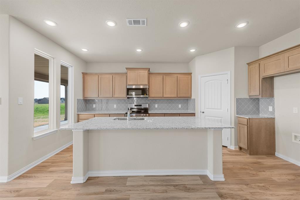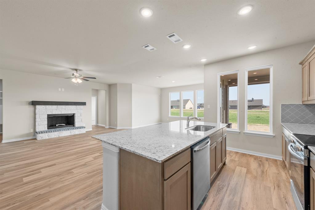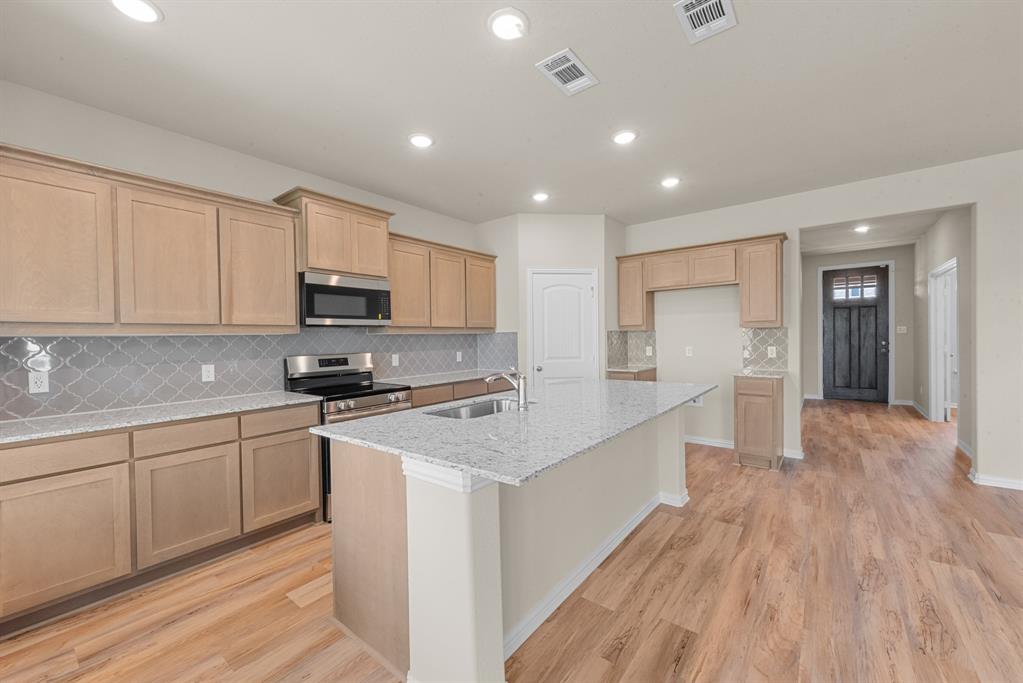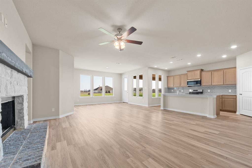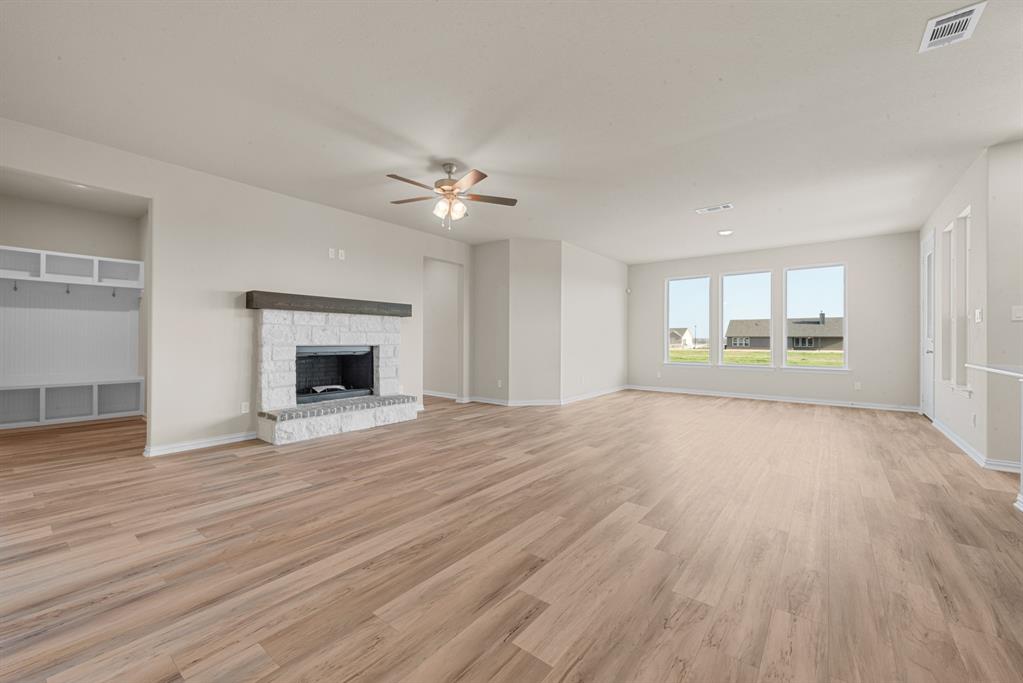 We are excited to introduce a brand new floor plan called the Salado! The entry is open to a bright flex Room on the right. The private owner's suite is separate from bedrooms 2 through 4. The owner's suite is complete by including a garden tub, separate shower, private commode, walk in closet, and dual, separate vanities. Adjacent to the owner's suite is the large living room with a fireplace option and open to the spacious island kitchen.