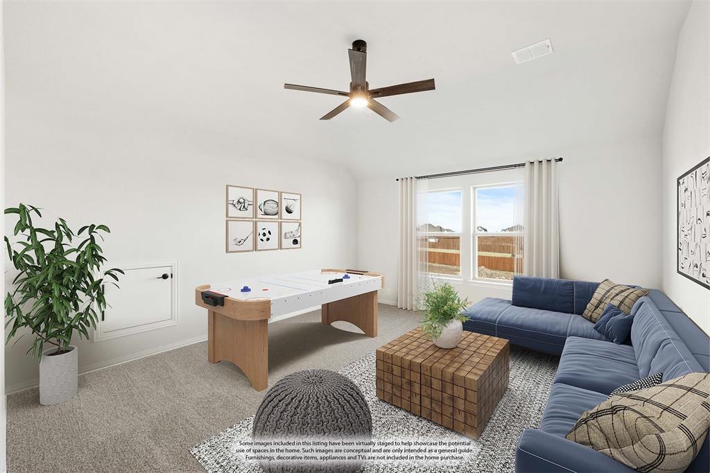 NEW! NEVER LIVED IN. Ready NOW! Bloomfield's Classic Series Seaberry II is a stunning two-story home designed for luxury and functionality, featuring 4 bedrooms and 4 baths. The main level includes a Study with elegant Glass French Doors, a Formal Dining Room with a Butler's Pantry; and a Deluxe Kitchen with Charleston-style white cabinets, upgraded backsplash, and all-electric built-in SS appliances. The expansive family room showcases a stone-to-ceiling fireplace with a cedar mantel and a raised hearth. There is an open railing off the Game Room providing a beautiful overlook above the space below. The Primary Suite offers a tranquil retreat with a garden tub, glass-enclosed shower, L-shaped dual vanity, and a spacious walk-in closet. The home boasts Laminate Wood floors in common areas, large 12 x 24 tile in wet areas, and an 8' Urban Front Door. The biggest highlight is the oversized lot of over half an acre with fully sodded yards with a sprinkler system. Upgraded brick and a covered patio complete the exterior of this magnificent home. Visit Coyote Crossing!