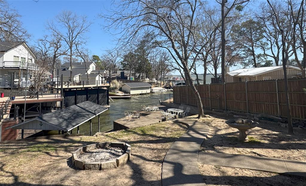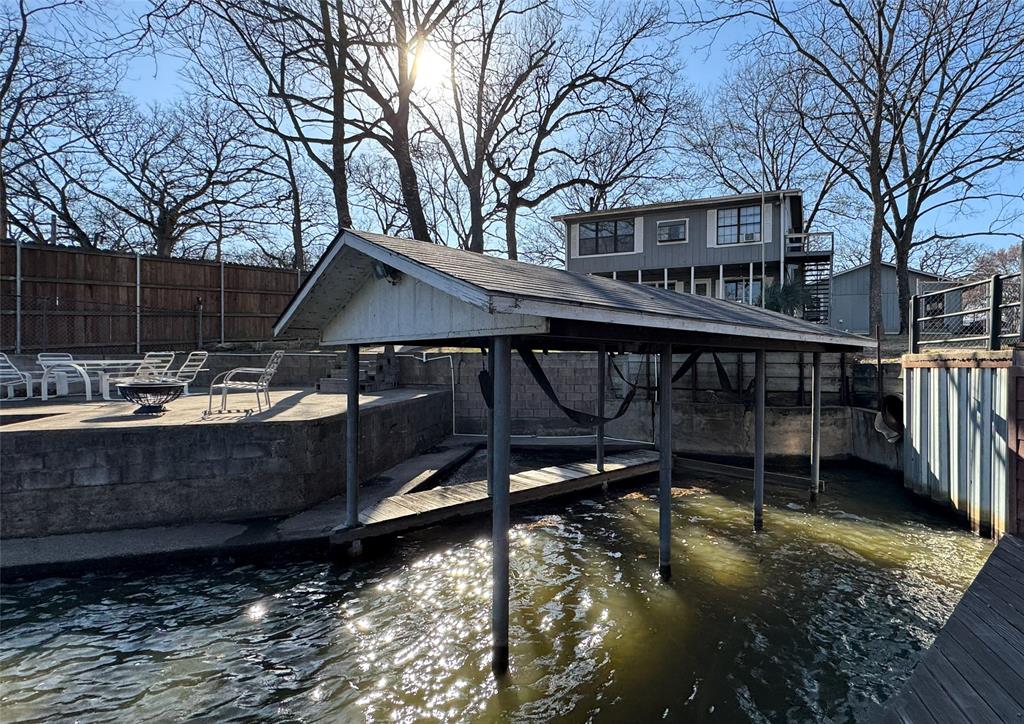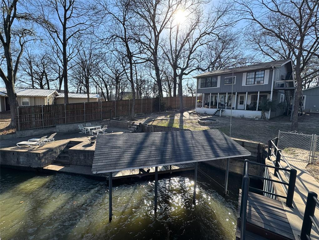 Three bedroom and two bathroom lakefront home in the quiet community of Tradewinds Addition with a boat slip, large entertaining area by the water, extra storage, wood burning stove, firepit, and covered parking with storage attached. This home features two bedrooms and one bathroom upstairs and one bedroom and a bathroom downstairs. There is a separate staircase entrance to the second level on the outside of the home. Enjoy all that Cedar Creek Lake has to offer while relaxing on your back porch or looking out your windows at the lake. This home is on a lot and a half and at the end of a cove. Only one hour from Dallas.